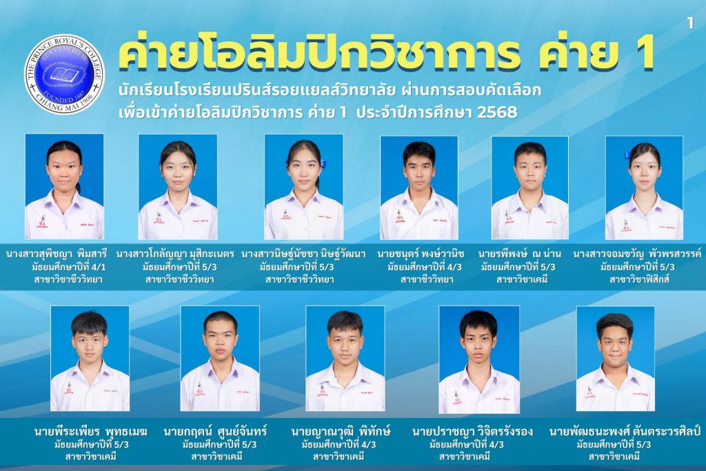 นักเรียน PRC ผ่านการสอบคัดเลือกเพื่อเข้าค่ายโอลิมปิกวิชาการ ค่าย 1 ปีการศึกษา 2568