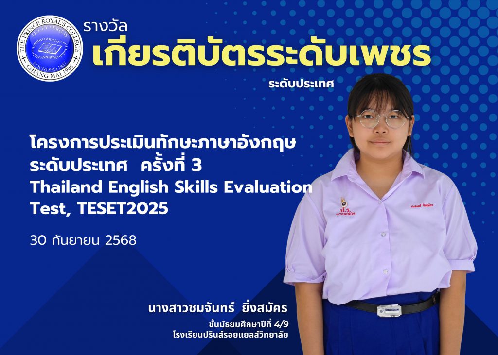 นางสาวชมจันทร์ ยิ่งสมัคร สอบวัดความรู้ภาษาอังกฤษอันดับที่ 2 ระดับประเทศ
