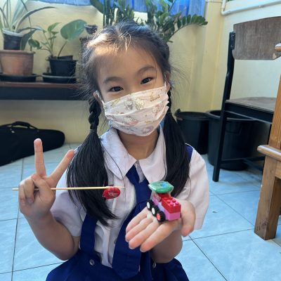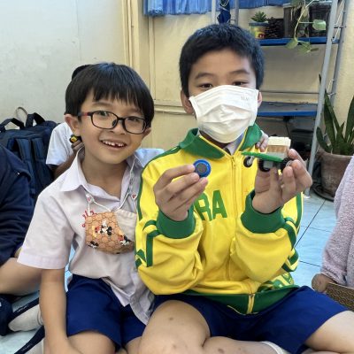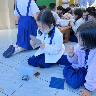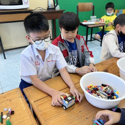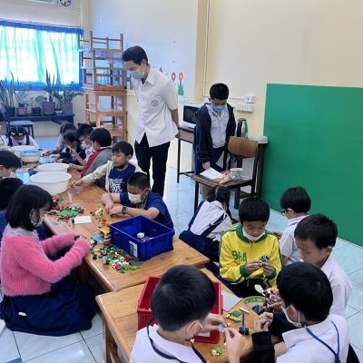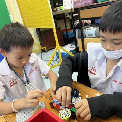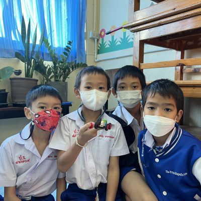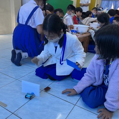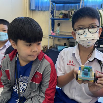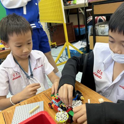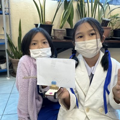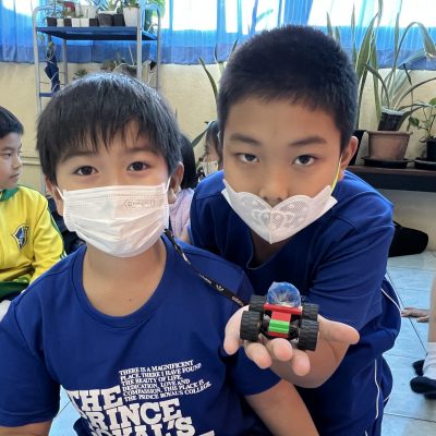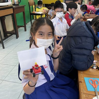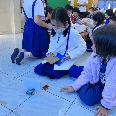 นักเรียนออกแบบรถลากซานต้าและรถลากสามารถขับเคลื่อนด้วยแรงไม่สัมผัส จากนั้นทำการแข่งขันและสรุปผลการทดลอง ว่ารูปทรงรถแบบใดสามารถขับเคลื่อนได้ดีและแรงใดช่วยให้รถไปได้ไกล