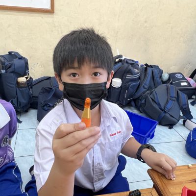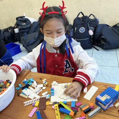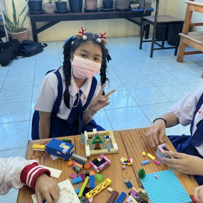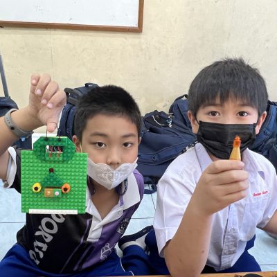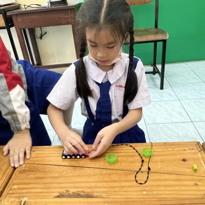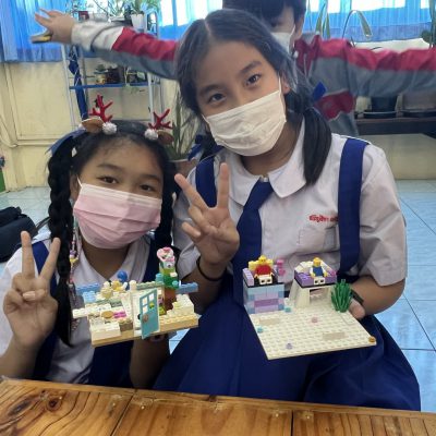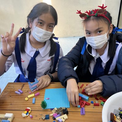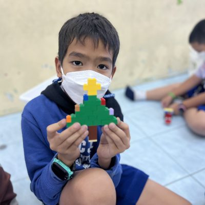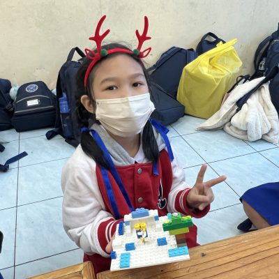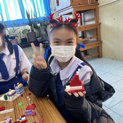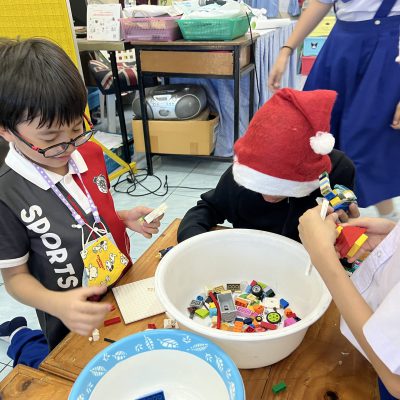 นักเรียนออกแบบของตกแต่งและโมเดลที่สื่อความหมายถึงวันคริสต์มาส ไม่ว่าจะเป็น เทียนคริสต์มาส ต้นคริสต์มาส กล่องของขวัญฯ ตามจินตนาการ