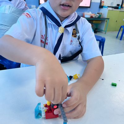จากสถานการณ์พายุไต้ฝุ่นไห่ขุยเคลื่อนตัวขึ้นฝั่งมณฑลฝูเจี้ยนทางภาคตะวันออกเฉียงใต้ของประเทศจีน สร้างความเสียหายมากมายให้กับประชาชน ไม่ว่าจะเป็นความเสียหายของทรัพย์สินและชีวิต นักเรียนจึงทำการออกแบบยานพาหนะที่สามารถช่วยกู้ภัยพิบัติดังกล่าว ตามจินตนาการผ่านการออกแบบด้วยตัวต่อ LEGO