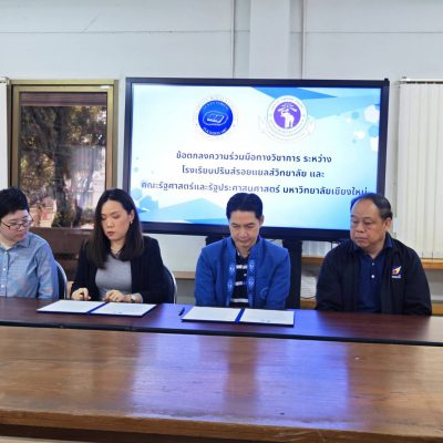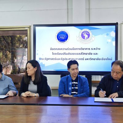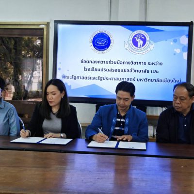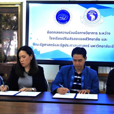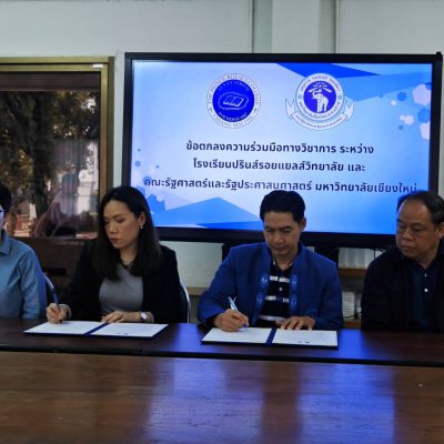 เมื่อวันที่ 28 พฤศจิกายน 2567 โรงเรียนปรินส์รอยแยลส์วิทยาลัย นำโดย ดร.เกรียง ฐิติจำเริญพร ผู้จัดการ – ผู้อำนวยการ ลงนามทำบันทึกข้อตกลงความร่วมมือทางวิชาการ ร่วมกับ คณะรัฐศาสตร์และรัฐประศาสนศาสตร์ มหาวิทยาลัยเชียงใหม่ โดย รองศาสตราจารย์ ดร.ไพลิน ภู่จีนาพันธุ์ คณบดีคณะรัฐศาสตร์และรัฐศาสตร์ มหาวิทยาลัยชียงใหม่ เป็นผู้ลงนาม ณ ห้องประชุม 1 อาคารเพชรรัตน-สุวัทนา โดยมีข้อตกลงความร่วมมือในการส่งเสริมและพัฒนาความร่วมมือทางวิชาการ เพื่อสร้างเครือข่ายความร่วมมือระหว่างคณะรัฐศาสตร์และรัฐประศาสนศาสตร์ และโรงเรียนปรินส์รอยแยลส์วิทยาลัย ในการพัฒนาการจัดการเรียนการสอนหลักสูตรอบรมระยะสั้นรูปแบบการศึกษาตลอดชีวิต อันก่อให้เกิดประโยชน์ในการเพิ่มผลสัมฤทธิ์ในการเรียนรู้ของผู้เรียน นอกจากนี้ยังเป็นการพัฒนานวัตกรรมทางการศึกษาต่อไป