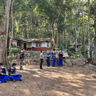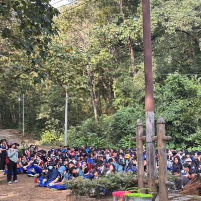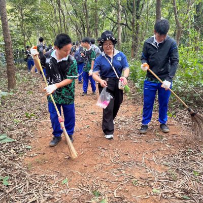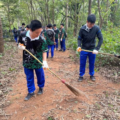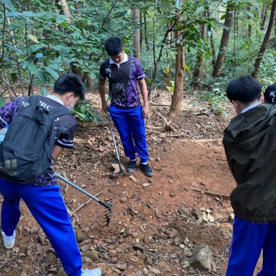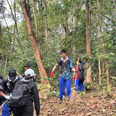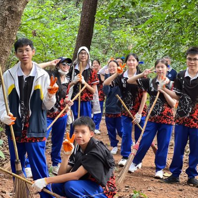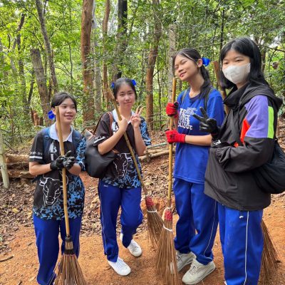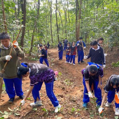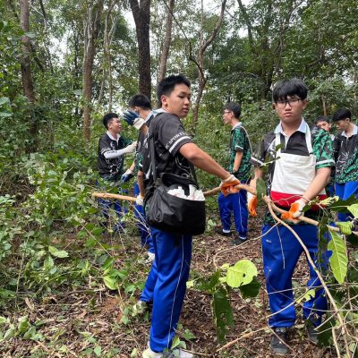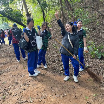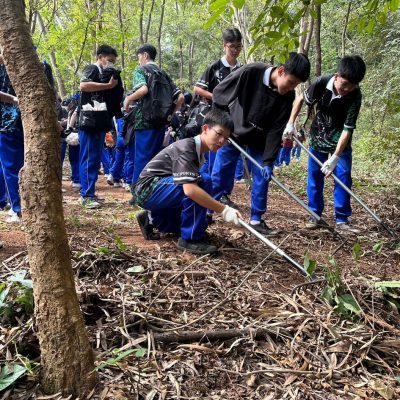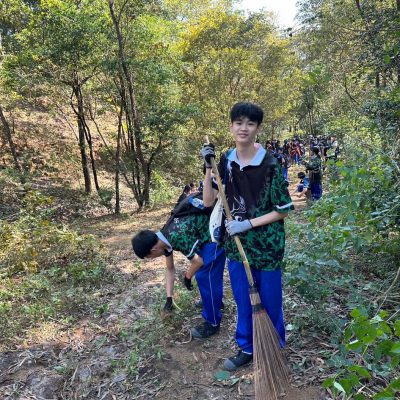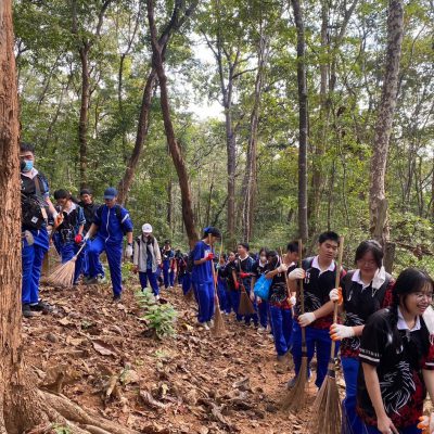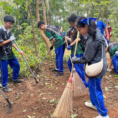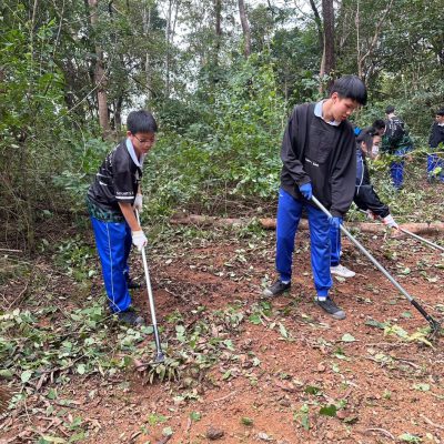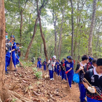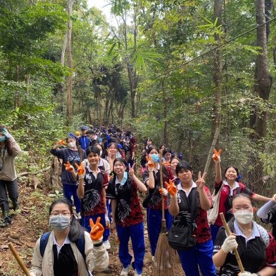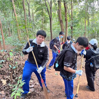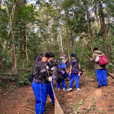 นักเรียนเข้าไปเข้าบำเพ็ญประโยชน์ โดยการทำแนวกันไฟป่า เก็บขยะ และช่วยทำความสะอาดภายในศูนย์ศึกษาธรรมชาติและสัตว์ป่าเชิงดอยสุเทพ