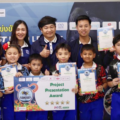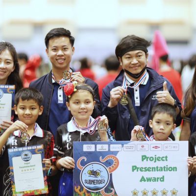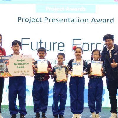 We are a team called “Future Force,” studying in Primary 3 at The Prince Royal’s College, Chiang Mai. “Today, we are here to present our project for The First Lego League Thailand 2024-2025, under the theme “Submerged.” We would like to share our technological creativity using LEGO to explore the different layers of the ocean and create and implement innovations for a better future with a thriving ocean.