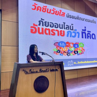 โครงการ วัคซีนวัยใส ระดับมัธยมศึกษาตอนต้น จัดขึ้นเมื่อวันที่ 30 พฤษภาคม 2568 เป็นกิจกรรมที่สร้างความรู้ความเข้าใจเกี่ยวกับเรื่องความเสี่ยงหรืออันตรายที่เกิดขึ้นในโลกออนไลน์ เช่น การโจมตี ด้านความปลอดภัยของข้อมูล การเข้าถึงข้อมูลส่วนตัวโดยไม่ได้รับอนุญาต การละเมิดความเป็นส่วนตัวออนไลน์ การฉ้อโกง หรือการหลอกลวงในรูปแบบต่าง ๆ ทั้งด้านการเงิน และพฤติกรรมที่จะนำไปสู่การล่วงละเมิดทางเพศ โดยมีวัตถุประสงค์เพื่อให้นักเรียนมีความรู้ ความเข้าใจเกี่ยวกับภัยออนไลน์รูปแบบต่าง ๆ และให้นักเรียนตระหนักถึงความเสี่ยงในการใช้เทคโนโลยีและสามารถใช้เทคโนโลยีอย่างปลอดภัย