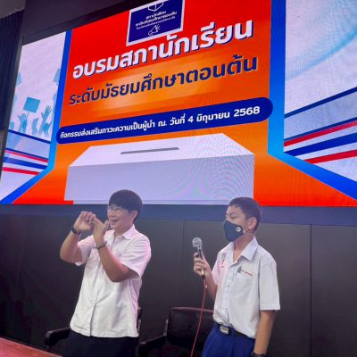 วันพุธ ที่ 4 มิถุนายน 2568 ตั้งแต่เวลา 08.00 น-13.00 น สภานักเรียนระดับมัธยมศึกษาตอนต้น จัดอบรมส่งเสริมภาวะความเป็นผู้นำให้กับสภานักเรียนระดับมัธยมศึกษาตอนต้นปีการศึกษา 2568 ได้เห็นถึงความสำคัญของการจัดตั้งสภานักเรียนในสถานศึกษาเป็นกลไกสำคัญในการส่งเสริมประชาธิปไตยในโรงเรียนช่วยให้นักเรียนได้เรียนรู้บทบาทหน้าที่ของพลเมืองที่ดี ฝึกความรับผิดชอบ การเป็นผู้นำและผู้ตามที่ดี รวมถึงการทำงานร่วมกับผู้อื่นอย่างมีประสิทธิภาพ