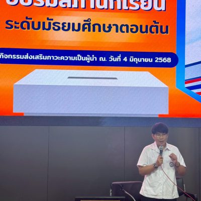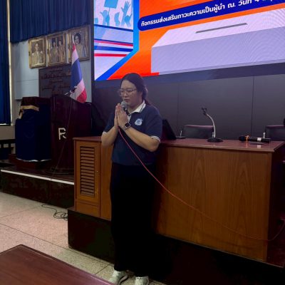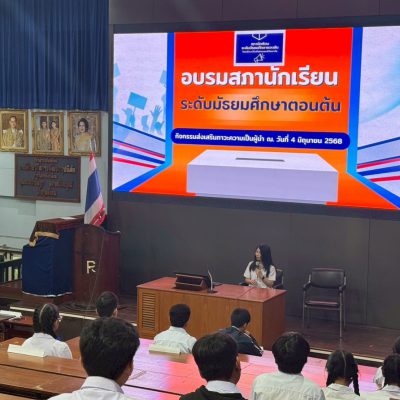 ผู้ช่วยผู้อำนวยการระดับมัธยมศึกษาตอนต้น ให้แง่คิดกับนักเรียนในหัวข้อ บทบาทของสภานักเรียนระดับมัธยมศึกษาตอนต้น