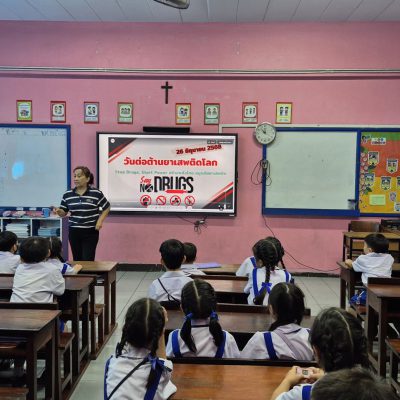 ได้จัดกิจกรรมวันต่อต้านยาเสพติดโลก ซึ่งตรงกับวันที่ 26 มิถุนายนของทุกปี ตามประกาศตามมติของสมัชชาใหญ่แห่งสหประชาชาติ เป็นวันสำคัญสากล เพื่อต่อต้านการใช้ยาในที่ทางผิด และค้ายาที่ไม่ถูกต้องตามกฎหมาย โดยหมายความถึงยาเสพติด ยึดถือเป็นวันสำคัญประจำปีมาตั้งแต่การประกาศเมื่อ 26 มิถุนายน พ.ศ. 2531มีวัตุถุประสงค์ส่งเสริมให้นักเรียนตระหนักถึงภัยของยาเสพติด ทั้งต่อตนเอง ครอบครัว และสังคมโดยจัดกิจกรรมให้ความรู้เกี่ยวกับยาเสพติดให้โทษ และกิจกรรมตอบคำถาม และเล่นเกม วัดความรู้เนื่องในวันต่อต้านยาเสพติดโลก