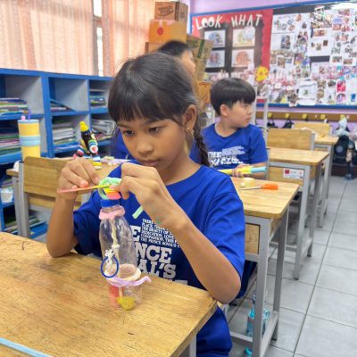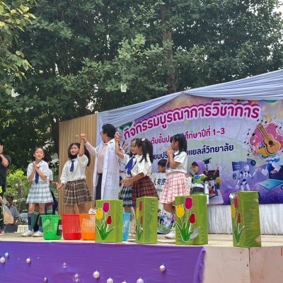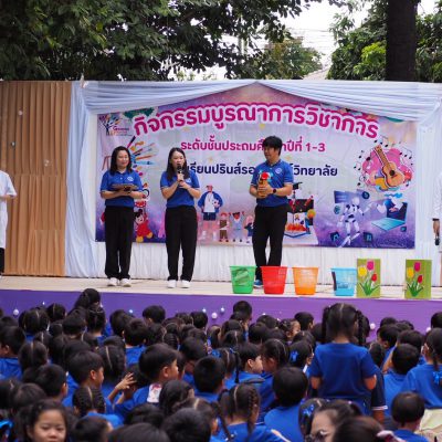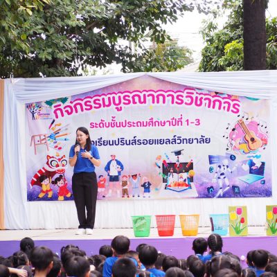 ระดับประถมศึกษาปีที่ 1-3 ได้จัดกิจกรรมบูรณาการวิชาการ ระหว่างวันที่ 21-22 สิงหาคม 2568 เพื่อเปิดโอกาสให้ผู้เรียนได้พัฒนาสมรรถนะด้านภาษา การคิดคำนวณ การคิดขั้นสูง มีสุขภาวะที่ดี มีสุนทรียภาพ และสามารถอยู่ร่วมกันกับธรรมชาติและสิ่งแวดล้อมได้อย่างยั่งยืน โดยจัดทำเป็นรูปแบบกิจกรรมฐานตามกลุ่มสาระการเรียนรู้วิชาต่างๆ ได้แก่ กิจกรรมบูรณาการพลศึกษา กิจกรรมบูรณาการภาษาไทย กิจกรรมบูรณาการภาษาต่างประเทศ กิจกรรมบูรณาการวิทยาศาสตร์และเทคโนโลยี กิจกรรมบูรณาการคณิตศาสตร์ เป็นต้น