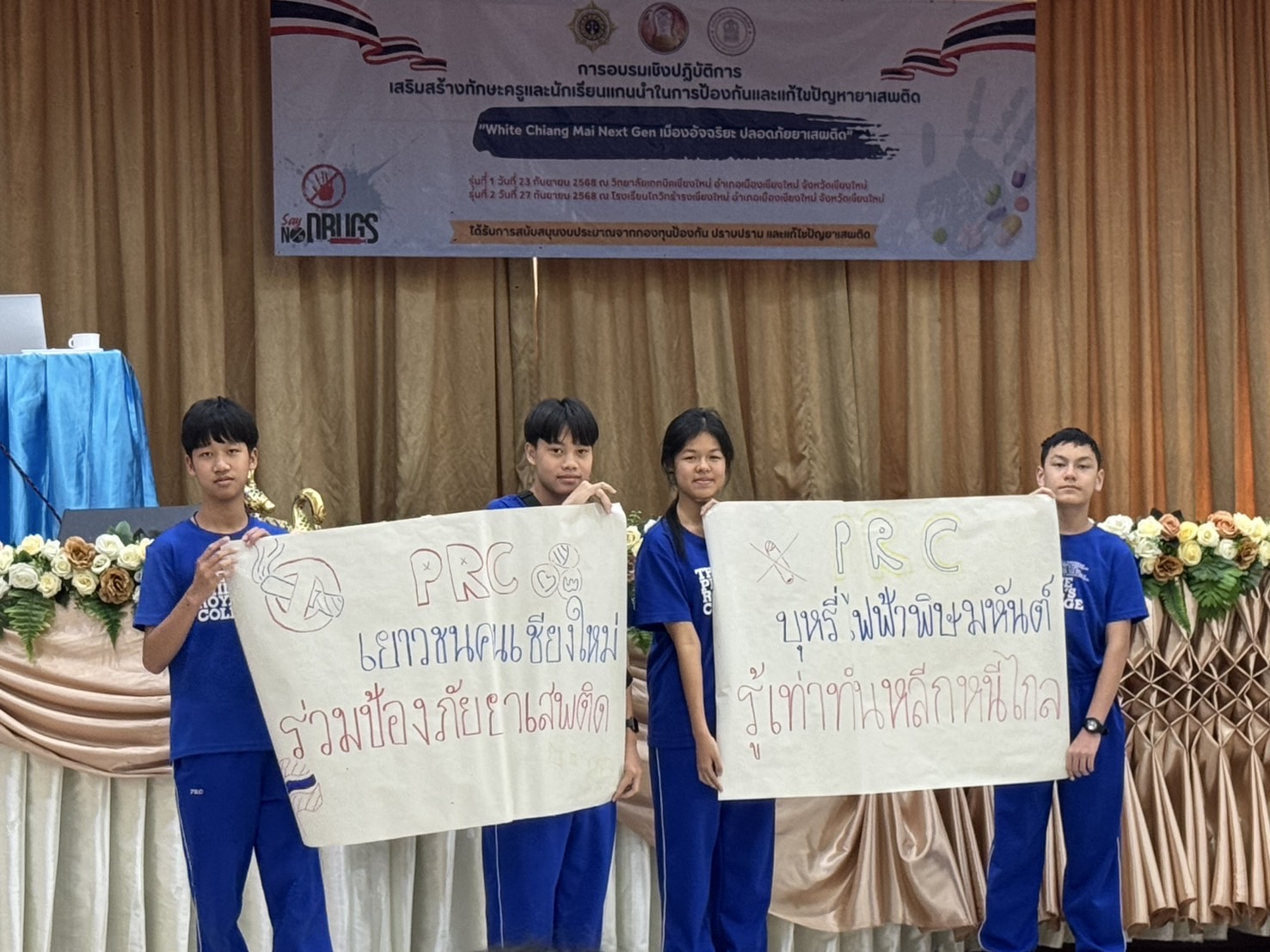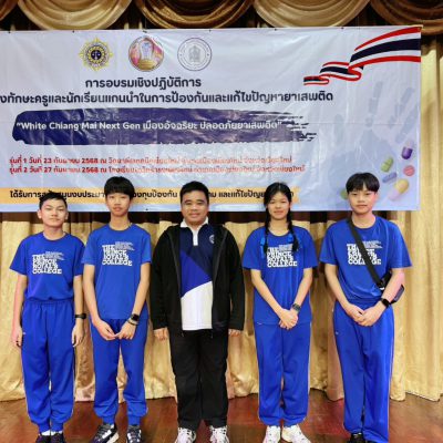 เมื่อวันเสาร์ที่ 27 กันยายน 2568 สภานักเรียนระดับมัธยมศึกษาตอนต้น เด็กชายวรเมธี ประสานเสียง เด็กชายอธิ วงค์จักร์ เด็กหญิงกัญญาภัค ชาติทองคำ และ เด็กชายณัฐภัทร ขันแก้วน่าน โดยมี คุณครูกรกช ไชยวงค์ ที่ปรึกษาสภานักเรียน ได้นำนักเรียนเข้าร่วมการอบรมเชิงปฏิบัติการ “เสริมสร้างทักษะครูและนักเรียนแกนนำในการป้องกันและแก้ไขปัญหายาเสพติด รุ่นที่ 2” ณ โรงเรียนโกวิทธำรงเชียงใหม่ อำเภอเมืองเชียงใหม่ จังหวัดเชียงใหม่