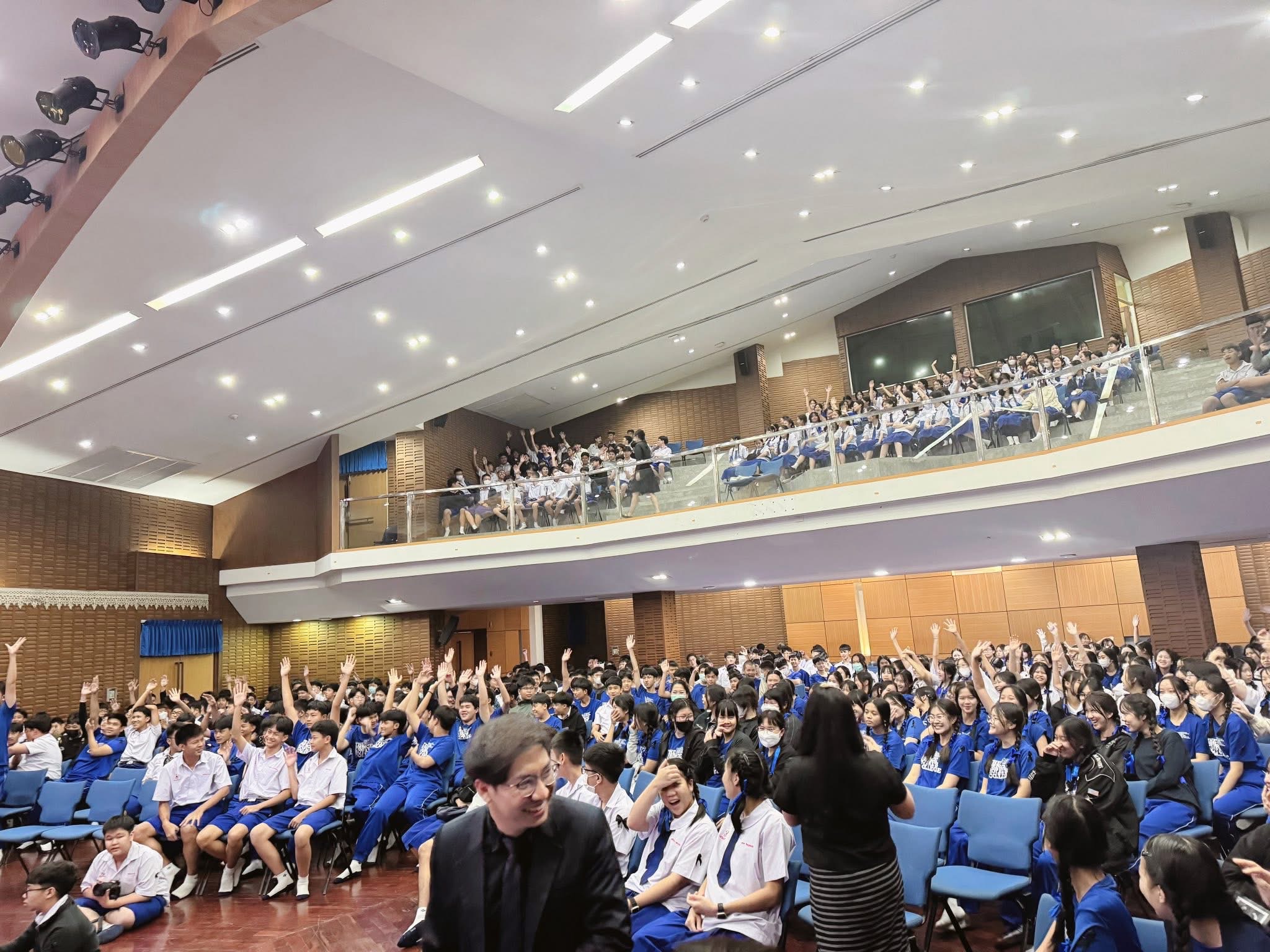 ในครั้งนี้ได้รับเกียรติจากวิทยากรพิเศษ 2 ท่าน ได้แก่ คุณทายาท เดชเสถียร และ คุณพิศาล แสงจันทร์ ผู้ผลิตรายการสารคดีชื่อดัง “หนังพาไป” ทางสถานีโทรทัศน์ Thai PBS มาร่วมแบ่งปันประสบการณ์การเดินทาง เรียนรู้ และการปรับตัวให้เข้ากับวัฒนธรรมที่หลากหลาย รวมถึงแนวคิดในการเคารพผู้คนและวัฒนธรรมท้องถิ่นในแต่ละประเทศ กิจกรรมนี้ได้รับความสนใจจากนักเรียนระดับมัธยมศึกษาตอนต้นเป็นจำนวนมาก บรรยากาศเต็มไปด้วยความรู้ และแรงบันดาลใจในการเรียนรู้ภาษาต่างประเทศ