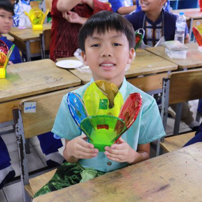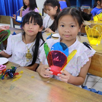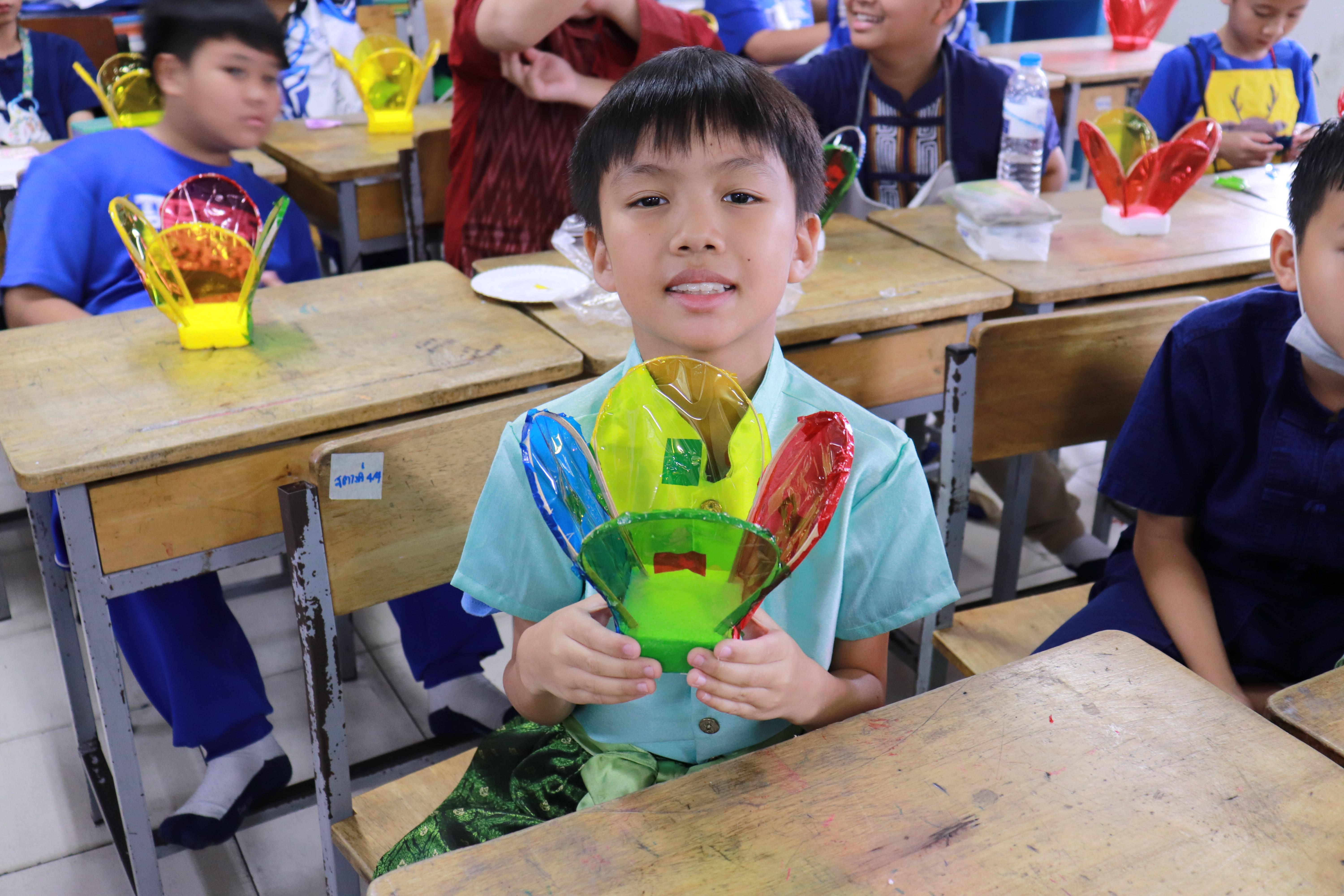 - เพ้นท์พัดไม้: นักเรียนได้ออกแบบลวดลายบนพัดไม้ด้วยสีอะคริลิก ถ่ายทอดความงามของศิลปะพื้นบ้านผ่านงานฝีมือ