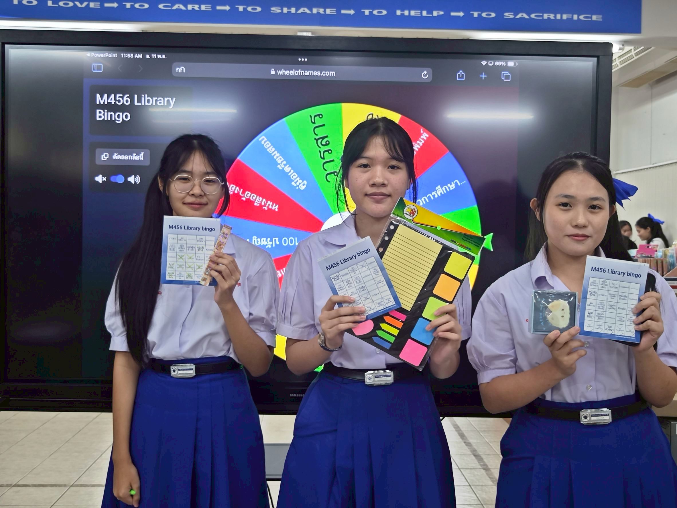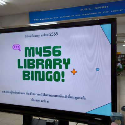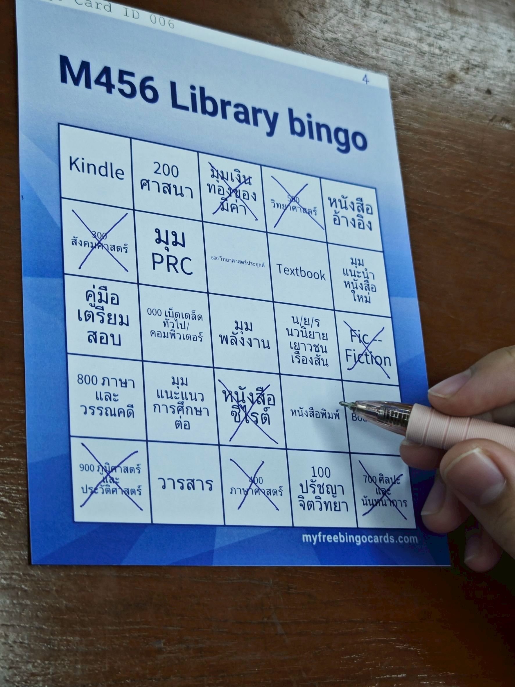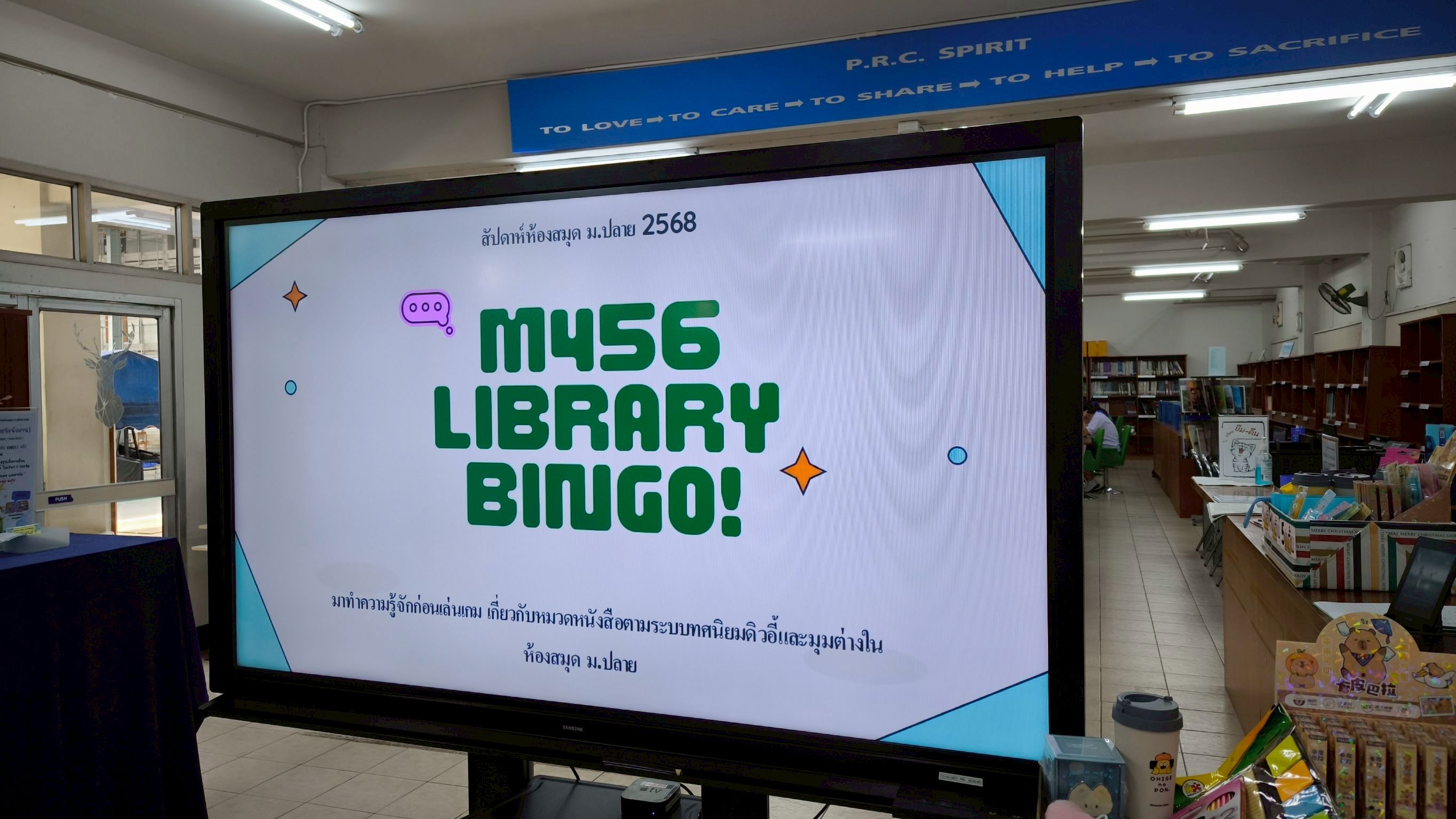 2. เกม M456 Library Bingo แข่งขันโดยแบ่งระดับชั้น รับสมัครรอบละไม่เกิน 30 คน / ระดับชั้น นักเรียนได้เรียนรู้เกี่ยวกับคำศัพท์ต่าง ๆ เกี่ยวกับห้องสมุด รวมถึงทรัพยากรสารสนเทศที่มีให้บริการในห้องสมุด ม.ปลาย ผ่านการเล่นเกมที่นักเรียนคุ้นเคย