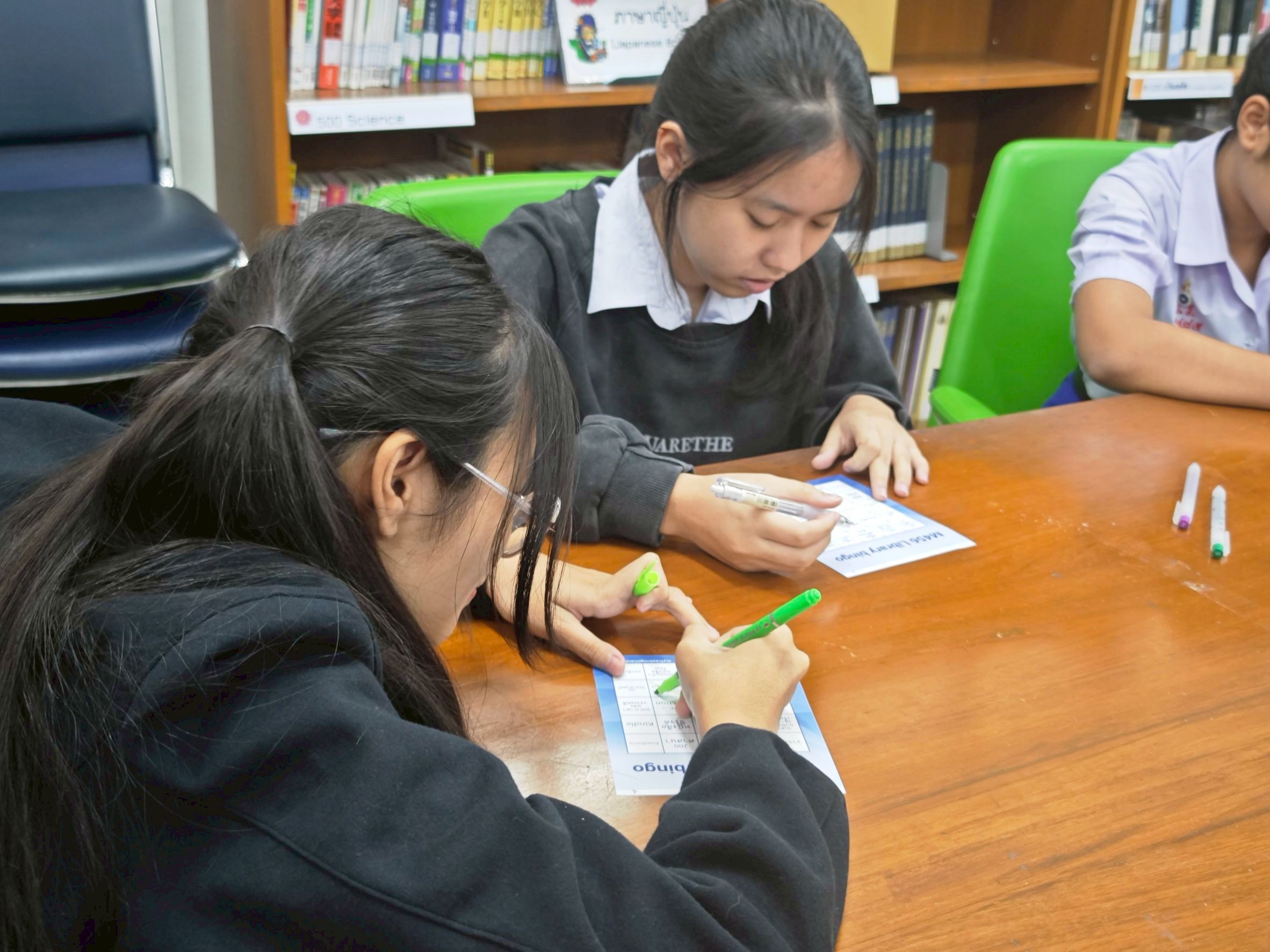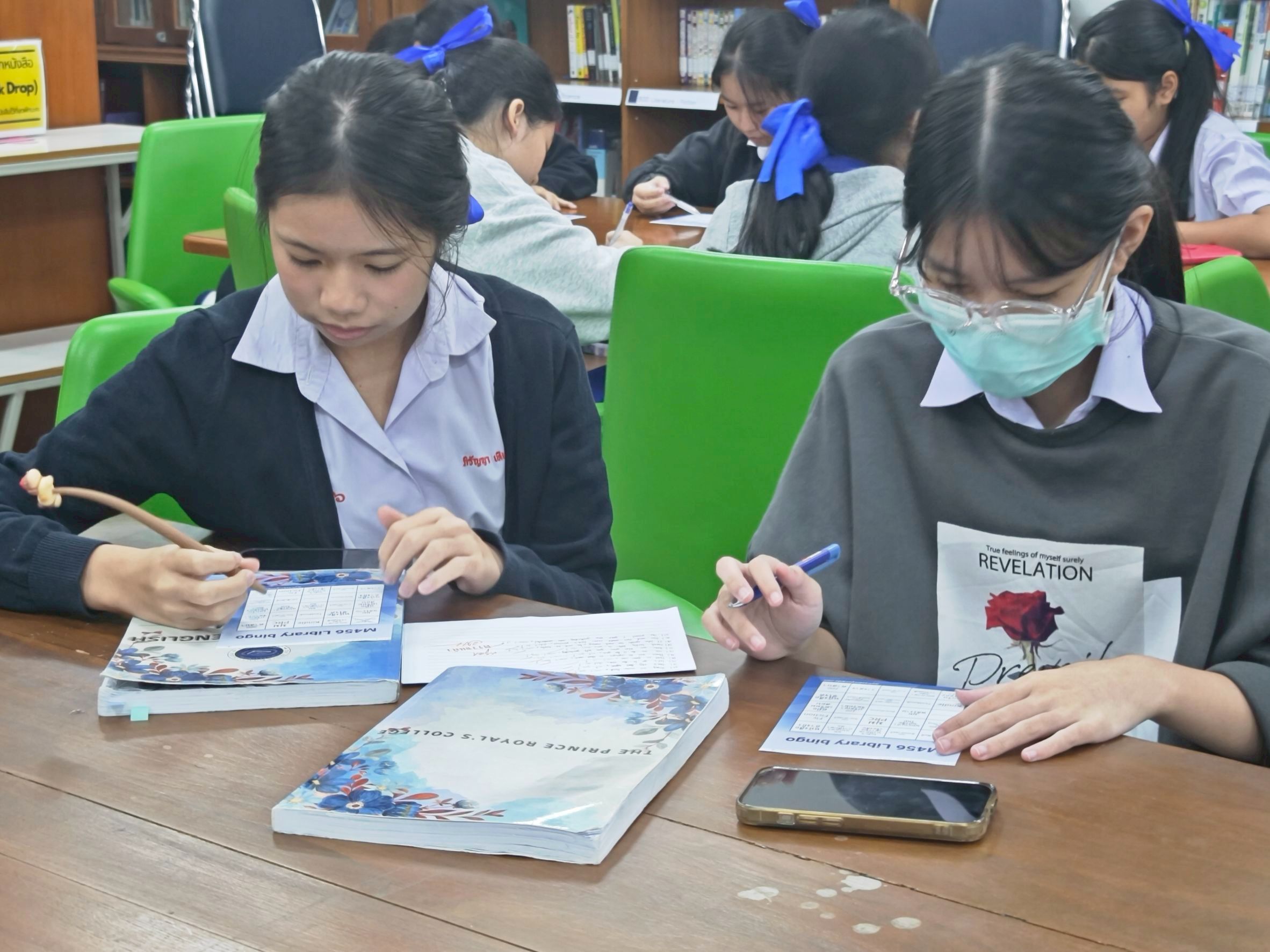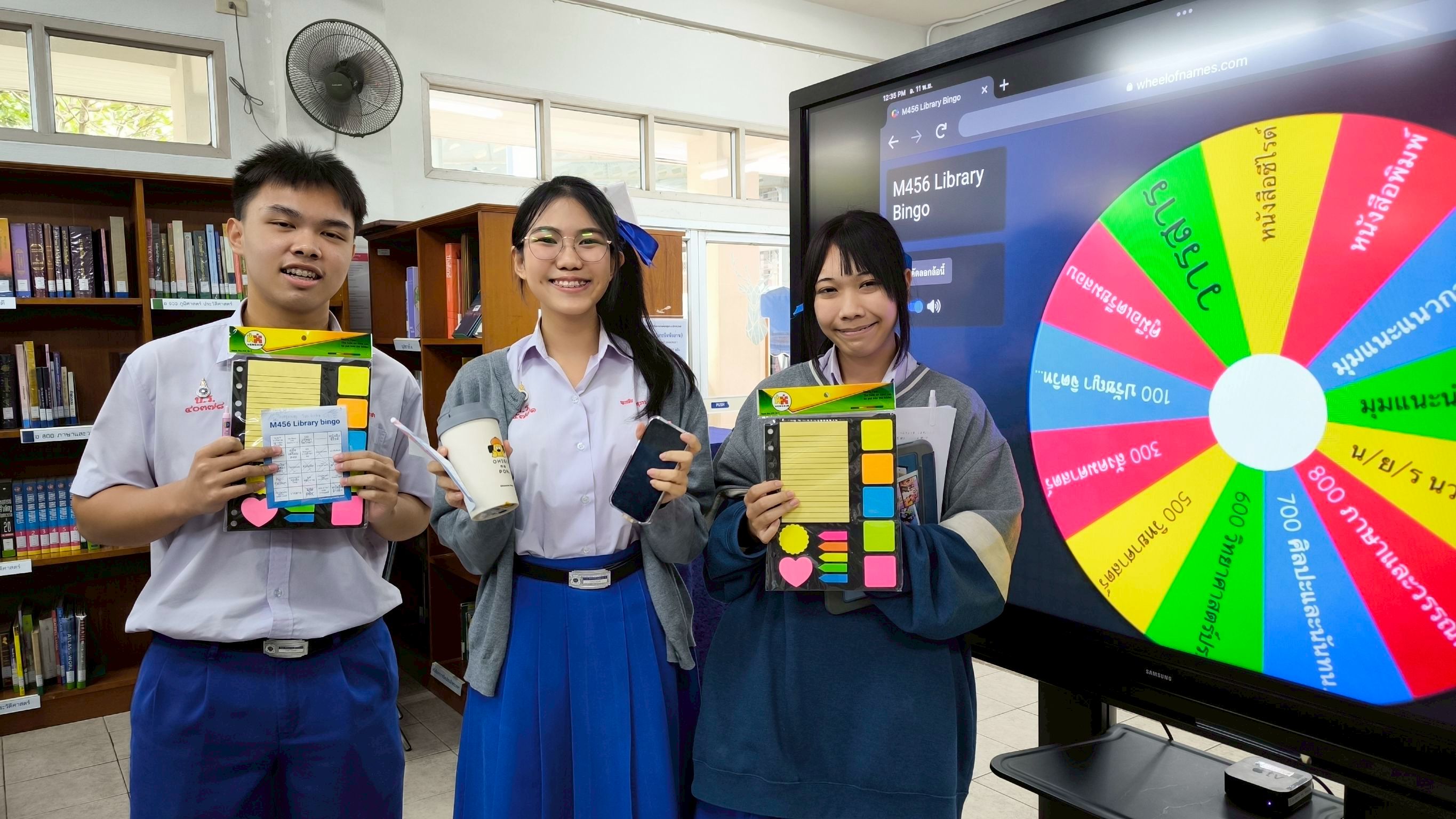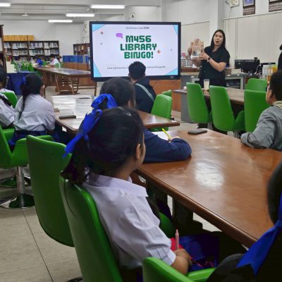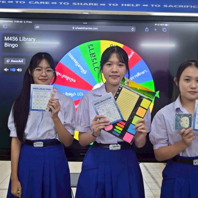2. เกม M456 Library Bingo แข่งขันโดยแบ่งระดับชั้น รับสมัครรอบละไม่เกิน 30 คน / ระดับชั้น นักเรียนได้เรียนรู้เกี่ยวกับคำศัพท์ต่าง ๆ เกี่ยวกับห้องสมุด รวมถึงทรัพยากรสารสนเทศที่มีให้บริการในห้องสมุด ม.ปลาย ผ่านการเล่นเกมที่นักเรียนคุ้นเคย