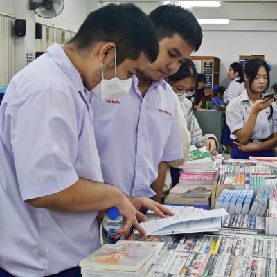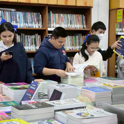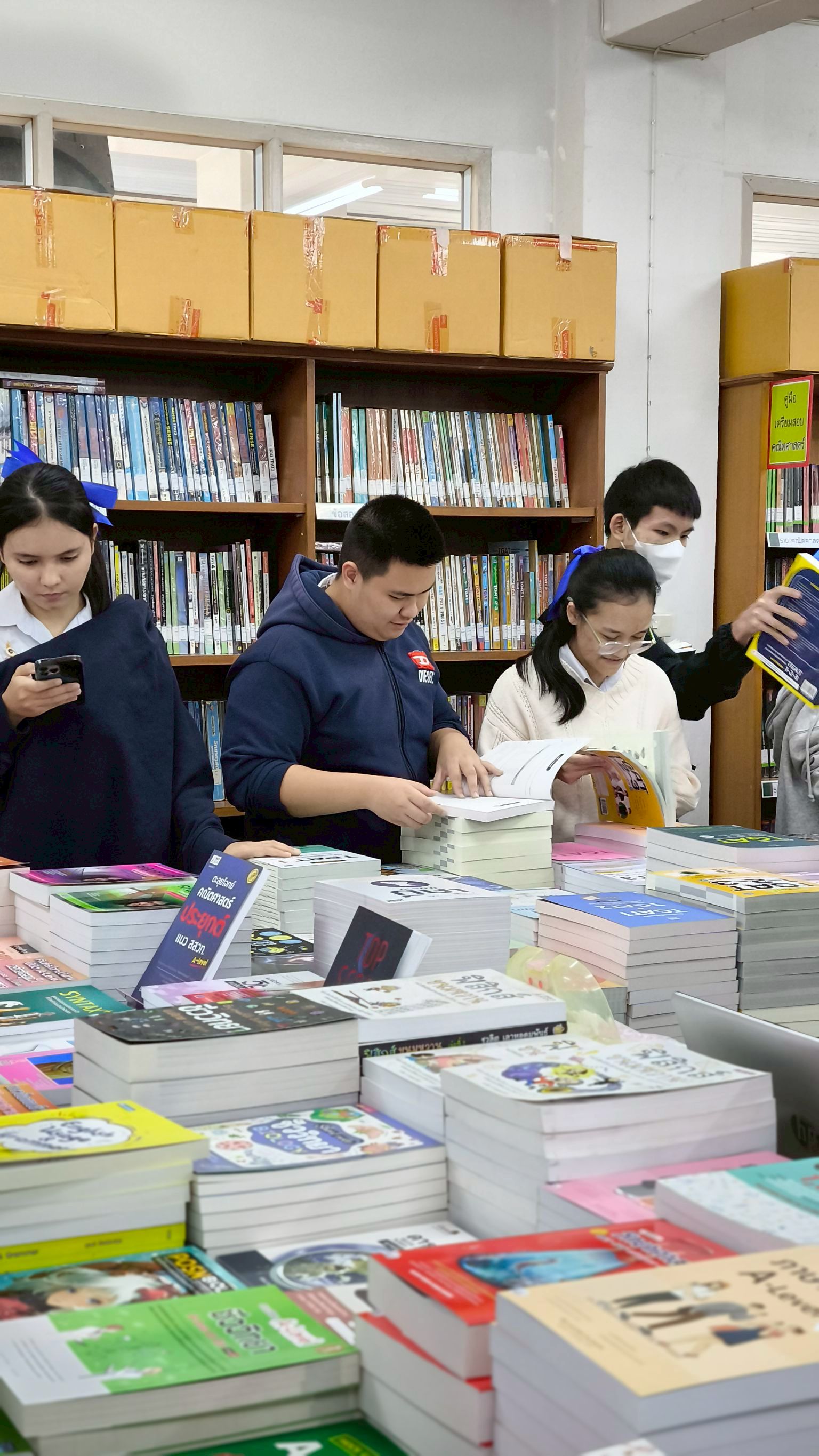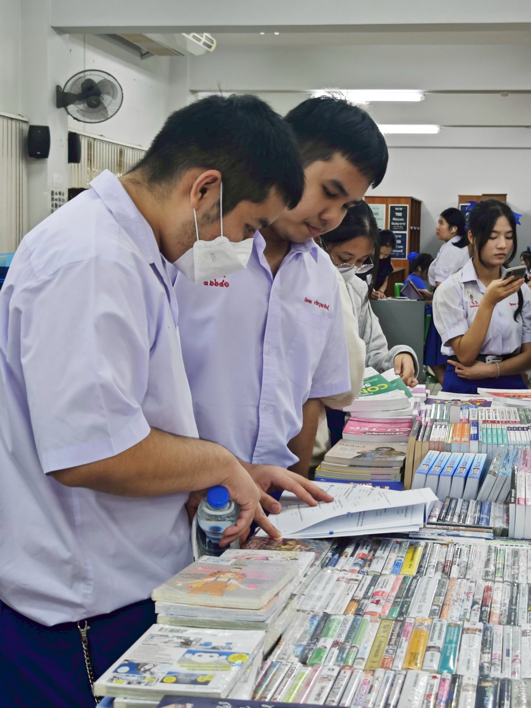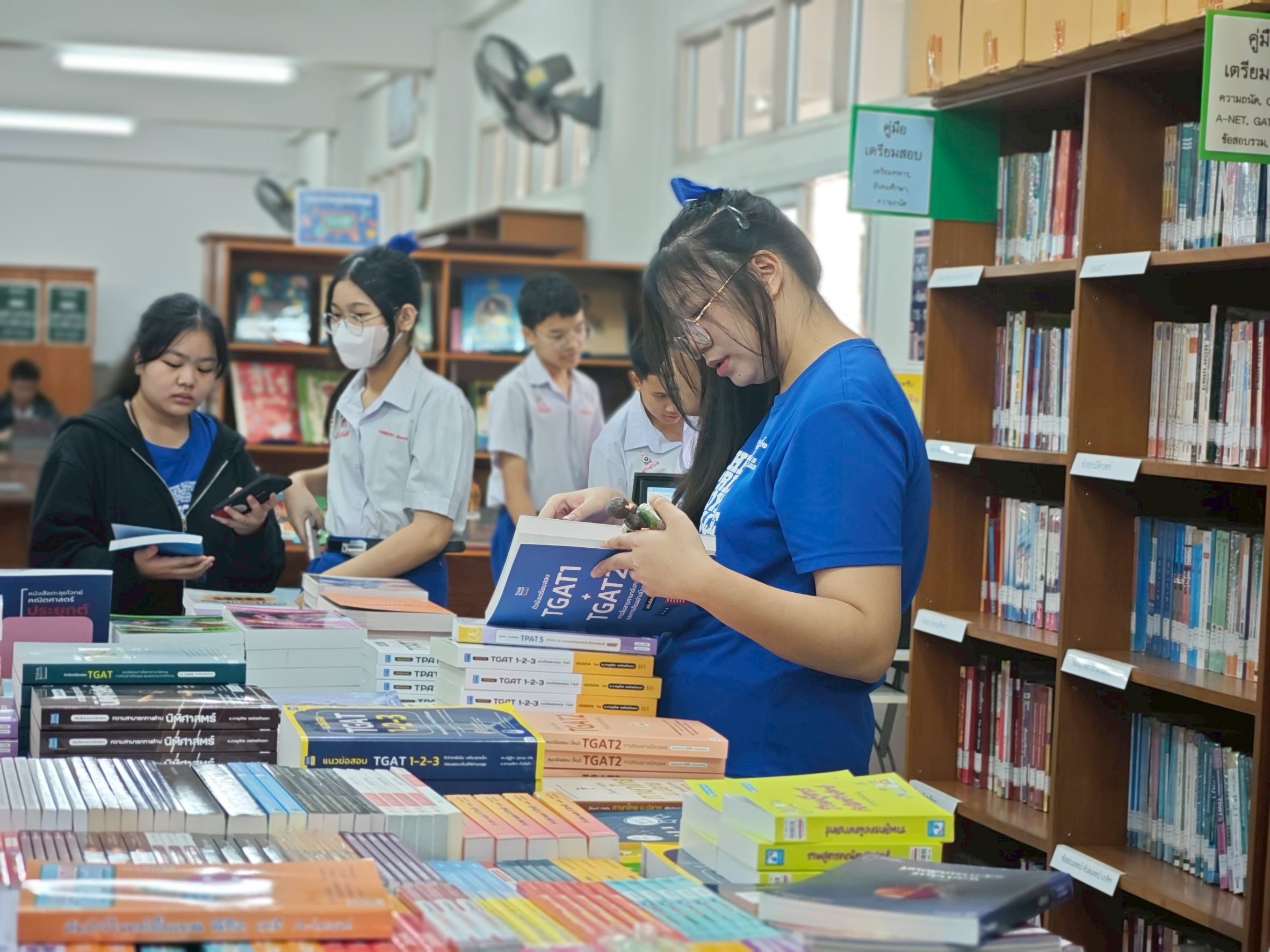 3. บูทขายหนังสือจากร้านศูนย์หนังสือจุฬา ฯ (สาขามหาวิทยาลัยพะเยา) ลดราคาให้ครูและนักเรียน 10-15 % เพื่อเปิดโอกาสให้นักเรียนและครูที่ต้องการซื้อหนังสือไว้อ่านส่วนตัว มีทั้งหนังสือคู่มือเตรียมสอบ ม.ปลาย เตรียมสอบเข้ามหาวิทยาลัย รวมถึงหนังสืออ่านเล่นทั่วไป เริ่มขายตั้งแต่วันที่ 12-14 พ.ย. 68 เ วลา 9.30 – 17.00 น. ( ยกเว้นวันพฤหัสบดี ปิดพร้อมเวลาปิดของห้องสมุด ม.ปลายตามปกติ 16.00 น. ) ซึ่งได้รับการตอบรับจากนักเรียนและครูเป็นอย่างมาก และเป็นกิจกรรมที่นักเรียนเสนอให้จัดซ้ำมากที่สุดอีกกิจกรรมหนึ่ง