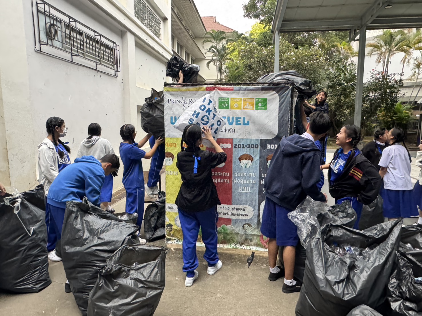 สภานักเรียนระดับมัธยมศึกษาตอนต้นได้ดำเนินกิจกรรม “ขวดแลกแต้ม” เพื่อส่งเสริมให้นักเรียนมีส่วนร่วมในการคัดแยกขยะและจัดการขยะพลาสติกอย่างเป็นระบบ ตลอดช่วงเวลาที่ผ่านมา นักเรียนได้ให้ความร่วมมืออย่างดีในการรวบรวมขวดน้ำดื่มพลาสติกและนำมาสะสมแต้มตามกิจกรรมที่กำหนด