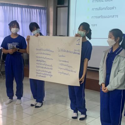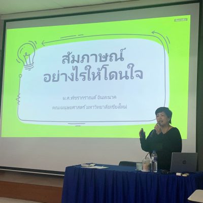 กลุ่มสาระภาษาไทย ระดับมัธยมศึกษาตอนปลาย จัดการอบรมเชิงปฏิบัติการ “สัมภาษณ์อย่างไรให้ปังโดนใจกรรมการ” เมื่อวันเสาร์ที่ 18 มิถุนายน 2565 เวลา 8:30-16:00 น. ณ ห้องประชุม 2 อาคารเพชรรัตน – สุวัทนา โดยได้รับเกียรติจาก ผศ.พัชรากราณต์ อินทะนาค อาจารย์ประจำภาควิชาภาษาอังกฤษ คณะมนุษย์ศาสตร์ มหาวิทยาลัยเชียงใหม่ มาเป็นวิทยากร ให้ความรู้และแบ่งปันประสบการณ์ในการสัมภาษณ์เพื่อเข้าศึกษาต่อระดับอุดมศึกษา ซึ่งนักเรียนให้ความสนใจ และได้ฝึกการสัมภาษณ์จริง โดยบรรยากาศในการอบรมครั้งนี้ นักเรียนตั้งใจและสามารถฝึกปฏิบัติสัมภาษณ์ได้อย่างดีเยี่ยมทุกคน