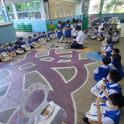 ระดับปฐมวัยจัดกิจกรรมสัปดาห์วันวิทยาศาสตร์ “Science Week 2022” ร่วมกับพี่ชั้นมัธยมศึกษาปีที่ 1/5 มัธยมศึกษาปีที่ 2/1 และ มัธยมศึกษาปีที่ 2/3 ในวันที่ 18 สิงหาคม 2565 ณ อาคาร 87 ปี แผนกอนุบาล