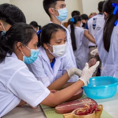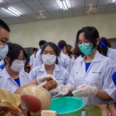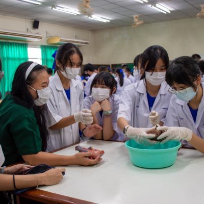 นักเรียนห้องเรียนพิเศษ สสวท. วิทยาศาสตร์สุขภาพ ระดับชั้นมัธยมศึกษาปีที่ 4 และ 5 เข้าร่วมกิจกรรม “ค่าย SMEP PRC วิทยาศาสตร์สุขภาพ” โดยมีวัตถุประสงค์เพื่อส่งเสริมให้นักเรียนที่สนใจทางวิทยาศาสตร์สุขภาพได้ค้นพบตัวเอง และเตรียมตัวในการจัดทำแฟ้มสะสมผลงานทางด้านวิทยาศาสตร์สุขภาพเพื่อใช้ในการศึกษาต่อในระดับอุดมศึกษาต่อไป การเข้าค่ายครั้งนี้นักเรียนจะได้รับความรู้เกี่ยวกับ หลักสูตรแพทยศาสตรบัณฑิต หลักสูตรการแพทย์แผนไทยประยุกต์ หลักสูตรวิทยาศาสตร์บัณฑิต สาขากายอุปกรณ์ และเทคโนโลยีบัณฑิต สาขาเทคโนโลยีการศึกษา และได้เรียนรู้เกี่ยวกับพยาธิวิทยาแพทยศาสตร์ โครงร่างของมนุษย์ อวัยวะในร่างกายมนุษย์ผ่านหุ่นจำลองและอวัยวะของจริงจากอาจารย์ใหญ่ในหัวข้อ “Human Gross Anatomy” นอกจากนี้ยังได้รับความรู้ทางเทคนิคการแพทย์เกี่ยวกับปฏิบัติการการตรวจสอบหมู่เลือด (ABO Blood Group) ณ คณะแพทยศาสตร์ศิริราชพยาบาล และ คณะสหเวชศาสตร์ มหาวิทยาบูรพ า ในวันที่ 10-12 ตุลาคม 2565 โดยมีนักเรียนในโครงการเข้าร่วมกิจกรรม จำนวน 64 คน