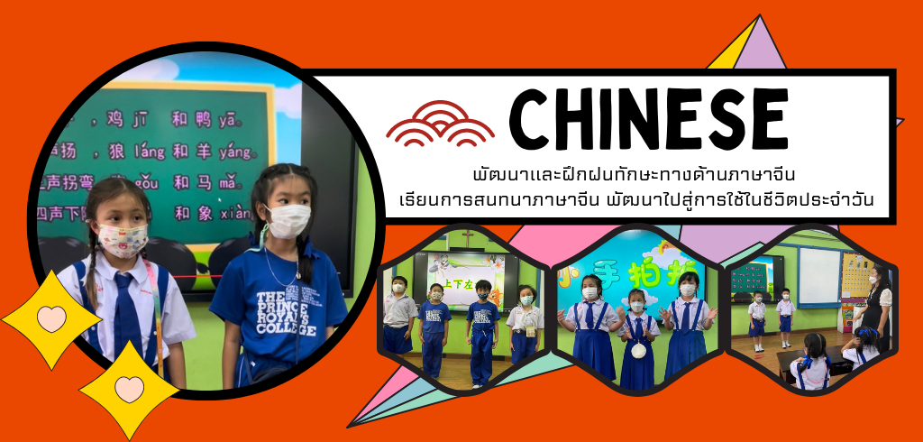 พัฒนาและฝึกฝนทักษะภาษาจีนโดยการ ฟัง พูด อ่าน เขียน รู้จักตัวอักษรจีน สะกดคำด้วยตัวพินอินและสนทนาภาษาจีนกับครูผู้สอนเจ้าของภาษา พัฒนาไปสู่การใช้ในชีวิตประจำวัน