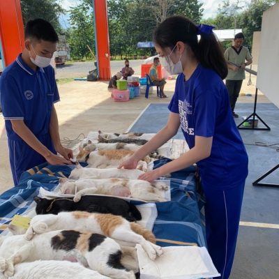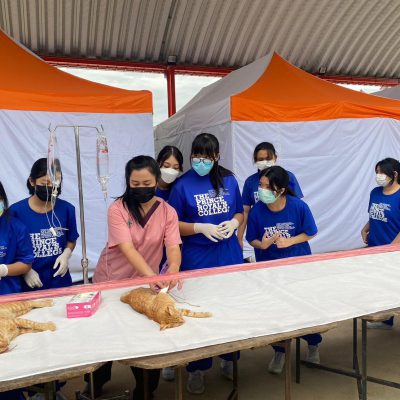 นักเรียนโรงเรียนปรินส์รอยแยลส์วิทยาลัย จำนวน 10 คน ซึ่งเป็นนักเรียนในวิชาเลือกเสรีสัตวแพทย์ เข้าร่วมกิจกรรมจิตอาสา กิจกรรมผ่าตัดทำหมันสุนัขและแมวในพื้นที่อำเภอแม่แตง จังหวัดเชียงใหม่ ภายใต้โครงการสัตว์ปลอดโรคคนปลอดภัยตามพระปณิธาน ศาสตราจารย์ ดร. สมเด็จพระเจ้าน้องนางเธอ เจ้าฟ้าจุฬาภรณ์วลัยลักษณ์ อัครราชกุมารีกรมพระศรีสวางควัฒน วรขัตติยราชนารี ระหว่างวันที่ 24-25 พฤศจิกายน 2565 ณ บริเวณเทศบาลตำบลสนมหาพน อำเภอแม่แตง เชียงใหม่