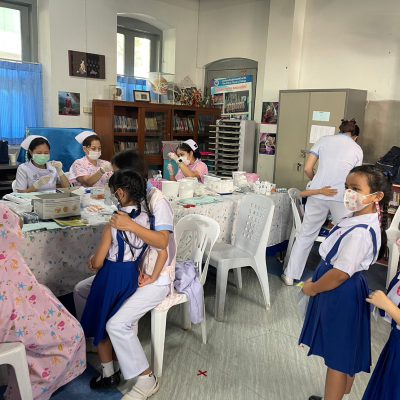 โรงเรียนปรินส์รอยแยลส์วิทยาลัย ร่วมกับ แผนกชุมชนและส่งเสริมสุขภาพ โรงพยาบาลแมคคอร์มิค ดำเนินงานด้านอนามัยโรงเรียนส่งเสริมสุขภาพขั้นพื้นฐานให้กับนักเรียน จัดให้มีการฉีดวัคซีนป้องกันโรคคอตีบ บาดทะยัก และหยอดวัคซีนป้องกันโรคโปลิโอ ตามนโยบายโครงการหลักประกันสุขภาพแห่งชาติ สำหรับนักเรียนชั้นประถมศึกษาปีที่ 1 ในวันศุกร์ ที่ 25 พฤศจิกายน 2565 ณ ห้องวัดผล อาคาร Neilson Hays