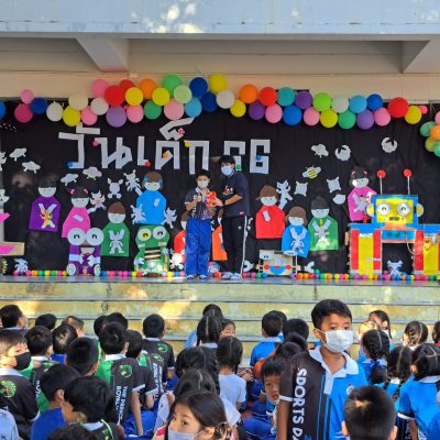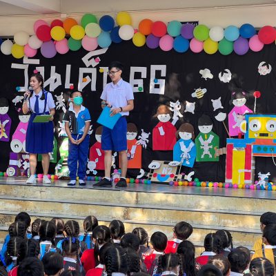 จัดงานวันเด็ก-งานวิชาการ ประจำปีการศึกษา 2565 โดยมีวัตถุประสงค์เพื่อส่งเสริมให้นักเรียนได้มีโอกาสในการแสดงความรู้ ความสามารถของตนเอง แสดงออกถึงความคิดริเริ่มสร้างสรรค์ มีความภาคภูมิใจในตนเองผ่านการแสดงของแต่ละห้องเรียน อีกทั้งยังส่งเสริมให้นักเรียนได้เรียนรู้และร่วมกิจกรรมกับผู้อื่น มีวินัย มีความรัก ความสามัคคีต่อเพื่อนในการทำกิจกรรมฐานการละเล่นต่างๆ