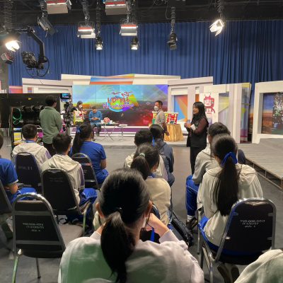 นักเรียนระดับชั้นมัธยมศึกษาปีที่ 4 และ 5 ห้องเรียนปกติ เข้าร่วมกิจกรรมวิชาเลือกเสรี Make your passion happen Media-Art and Technology : กิจกรรมวิชาเลือกเสรี เป็นการเปิดโอกาสให้นักเรียนได้เลือกเรียนในวิชาที่ชอบและสนใจที่สุด การสื่อสารมวลชนเป็นอีกคณะหนึ่งที่นักเรียนเลือกศึกษาต่อในระดับอุดมศึกษาจำนวนมาก การเรียนรู้ในห้องเรียนจากวิทยากรที่มีความรู้เฉพาะทาง และออกไปฝึกประสบการณ์กับหน่วยงานภายนอกจะทำให้นักเรียนได้รับประสบการณ์ตรงและสามารถนำความรู้ที่ได้มาประกอบการเลือกศึกษาต่อในระดับอุดมศึกษาต่อไป ดังนั้นเมื่อวันที่ 15 กุมภาพันธ์ 2566 นักเรียนได้ไปศึกษาดูงาน ณ สถานีโทรทัศน์ NBT และสถานีวิทยุกระจายเสียงแห่งประเทศไทย