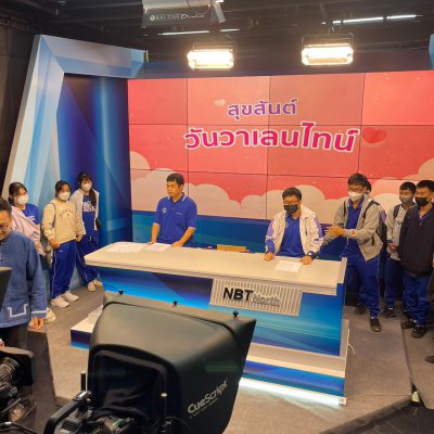 นักเรียนระดับชั้นมัธยมศึกษาปีที่ 4 และ 5 ห้องเรียนปกติ เข้าร่วมกิจกรรมวิชาเลือกเสรี Make your passion happen Media-Art and Technology : กิจกรรมวิชาเลือกเสรี เป็นการเปิดโอกาสให้นักเรียนได้เลือกเรียนในวิชาที่ชอบและสนใจที่สุด การสื่อสารมวลชนเป็นอีกคณะหนึ่งที่นักเรียนเลือกศึกษาต่อในระดับอุดมศึกษาจำนวนมาก การเรียนรู้ในห้องเรียนจากวิทยากรที่มีความรู้เฉพาะทาง และออกไปฝึกประสบการณ์กับหน่วยงานภายนอกจะทำให้นักเรียนได้รับประสบการณ์ตรงและสามารถนำความรู้ที่ได้มาประกอบการเลือกศึกษาต่อในระดับอุดมศึกษาต่อไป ดังนั้นเมื่อวันที่ 15 กุมภาพันธ์ 2566 นักเรียนได้ไปศึกษาดูงาน ณ สถานีโทรทัศน์ NBT และสถานีวิทยุกระจายเสียงแห่งประเทศไทย