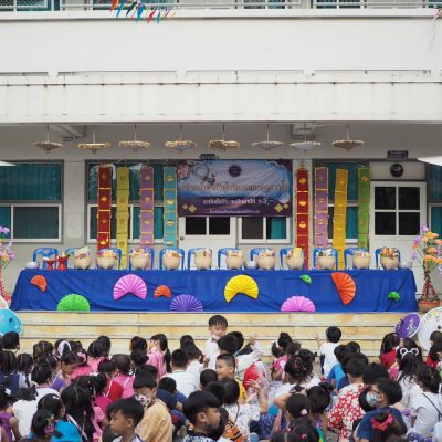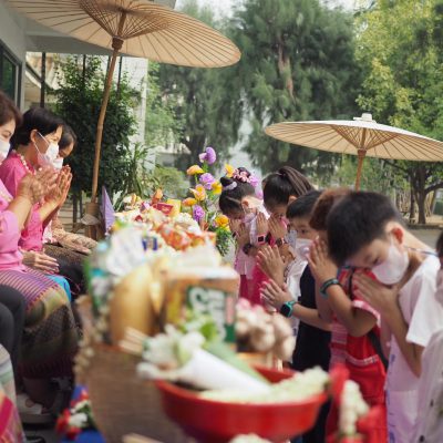 คณะครูและนักเรียนระดับประถมศึกษา โรงเรียนปรินส์รอยแยลส์วิทยาลัย ร่วมกันจัดกิจกรรมสืบสานประเพณีไทยรดน้ำดำหัว , ขอพรจากคณะผู้บริหารและครูอาวุโส