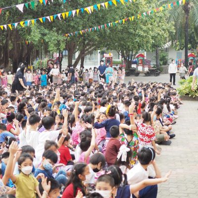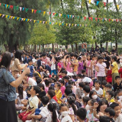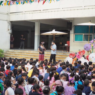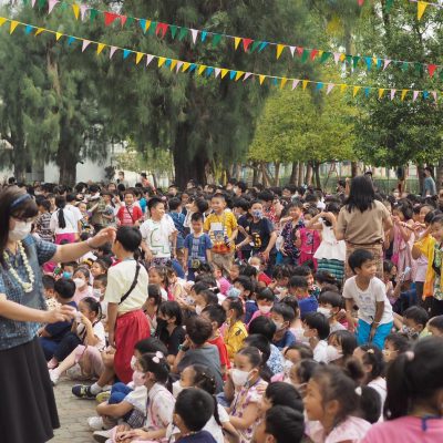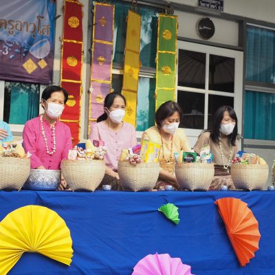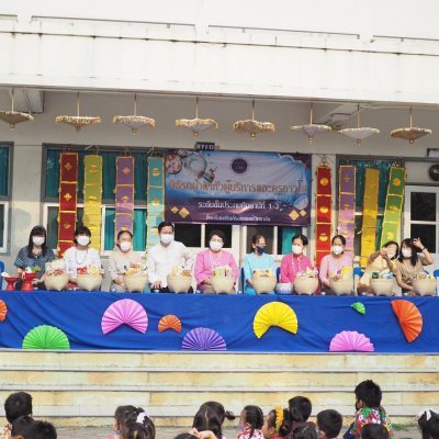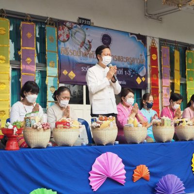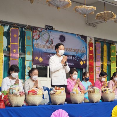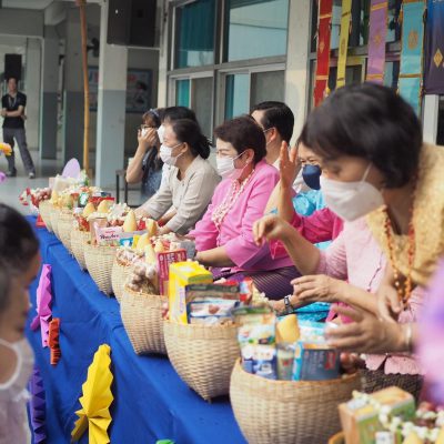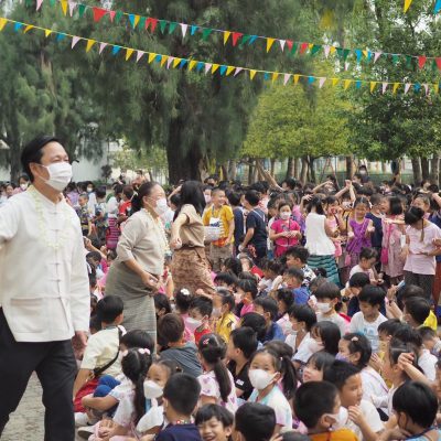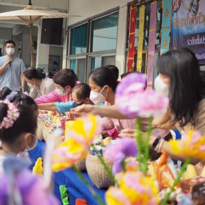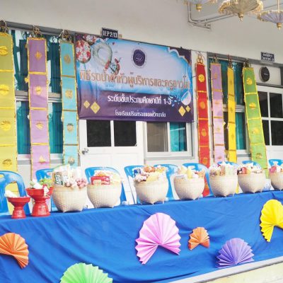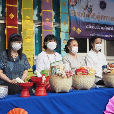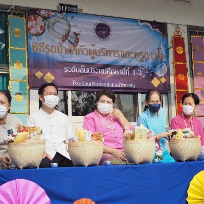 คณะครูและนักเรียน ระดับประถมศึกษา ร่วมรดน้ำดำหัว ; ขอพรจากคณะผู้บริหารและครูอาวุโส
