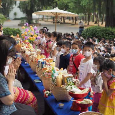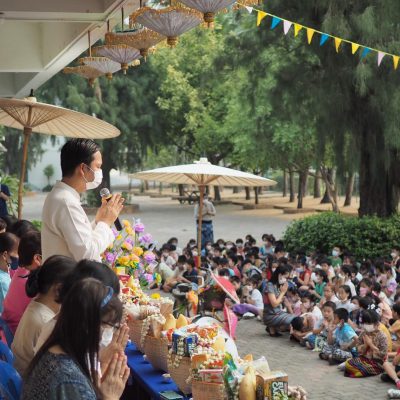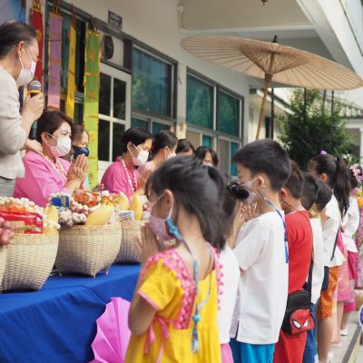 คณะครูและนักเรียนระดับประถมศึกษา โรงเรียนปรินส์รอยแยลส์วิทยาลัย  ร่วมกันจัดกิจกรรมสืบสานประเพณีไทยรดน้ำดำหัว , ขอพรจากคณะผู้บริหารและครูอาวุโส