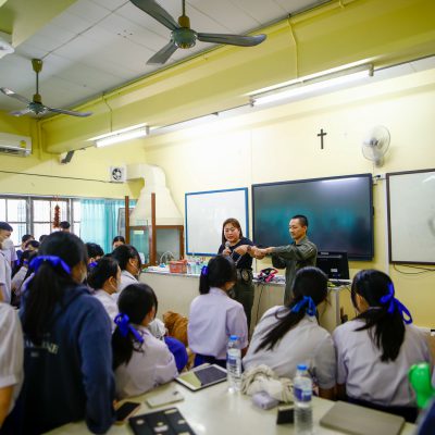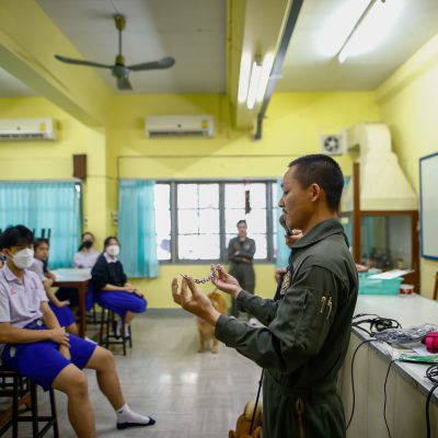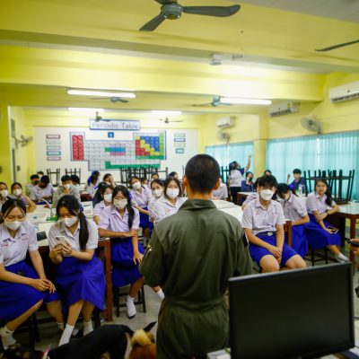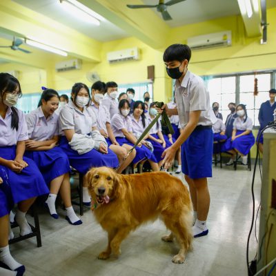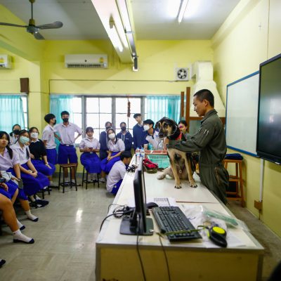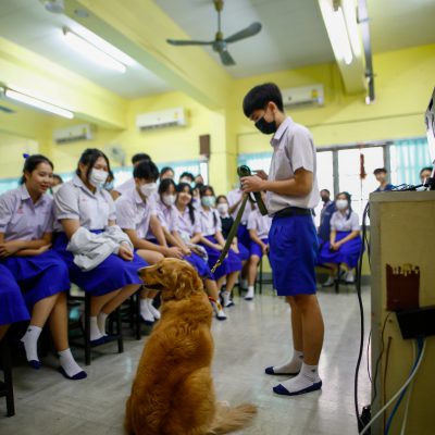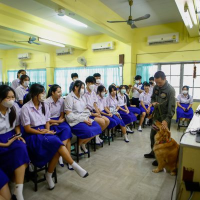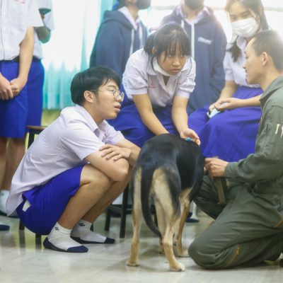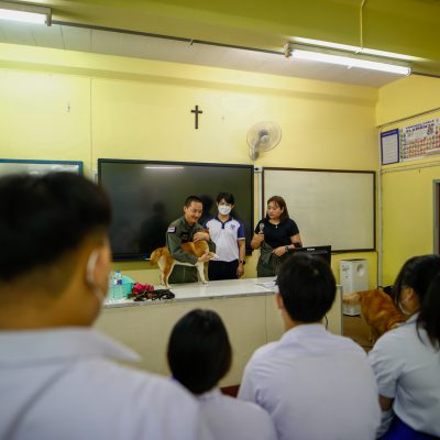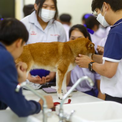 Career pathways program (วิชาเลือกเสรี) ในระดับมัธยมศึกษาตอนปลาย ส่งเสริมให้นักเรียนได้ลงมือปฎิบัติจริงผ่านการทำกิจกรรมในรายวิชาต่าง ๆ เพื่อให้นักเรียนรู้ลึก รู้จริง ฝึกคิด ฝึกแก้ไข ผ่านสถานการณ์จำลองที่เกิดขึ้นตรงหน้า เมื่อวันที่ 7 มิถุนายน 2566 วิชาเลือกเสรีสัตว์แพทย์ นักเรียนระดับชั้นมัธยมศึกษาปีที่ 5 ปีการศึกษา 2566 ได้รับความรู้ในเรื่องการนำสัตว์ป่วยเข้าพบแพทย์ และการเตรียมตัวก่อนฝึกประสบการณ์ที่โรงพยาบาลสัตว์ต่างๆ จากการบรรยายพิเศษหัวข้อ “การเตรียมความพร้อม และดูแลสุนัขเมื่อต้องพาไปพบสัตวแพทย์” โดยเชิญทีมวิทยากรจาก Nayowfc Dog Training Center ฝึกสุนัขเชียงใหม่ จำนวน 3 ท่าน คือ ร.ต.ภุชงค์ ยังปวน, คุณปาณิสรา ยังปวน และคุณศศิธร ตาย้อย มาเป็นวิทยากรบรรยาย ณ อาคารเพชรรัตน-สุวัทนา
