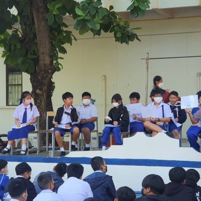 ระดับชั้นมัธยมศึกษาปีที่ 1 จัดกิจกรรม Spelling Bee พัฒนาความรู้คำศัพท์ภาษาอังกฤษ ซึ่งเป็นกิจกรรมหน้าแถว วันอังคารที่ 11 กรกฎาคม 2566