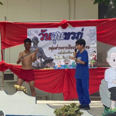 กลุ่มสาระการเรียนรู้วิชาภาษาไทยระดับมัธยมศึกษาตอนต้น จัดกิจกรรมสัปดาห์วันสุนทรภู่ระหว่างวันที่ 28-30 มิถุนายน 2566 ณลานกิจกรรมสวนร่มเย็นโดยได้รับเกียรติจาก ดร.ขัตติยา ปิยะรังษี ผู้ช่วยอำนวยการระดับชั้นมัธยมศึกษาตอนต้น กล่าวเปิดกิจกรรม