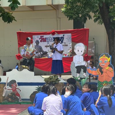 กลุ่มสาระการเรียนรู้วิชาภาษาไทยระดับมัธยมศึกษาตอนต้น จัดกิจกรรมสัปดาห์วันสุนทรภู่ระหว่างวันที่ 28-30 มิถุนายน 2566 ณลานกิจกรรมสวนร่มเย็นโดยได้รับเกียรติจาก ดร.ขัตติยา ปิยะรังษี ผู้ช่วยอำนวยการระดับชั้นมัธยมศึกษาตอนต้น กล่าวเปิดกิจกรรม
