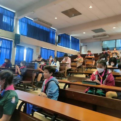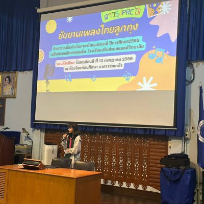 กลุ่มสาระการเรียนรู้วิชาภาษาไทยระดับมัธยมศึกษาตอนต้นจัดกิจกรรมประกวดร้องเพลงลูกทุ่งกิจกรรมเนื่องในวันภาษาไทยแห่งชาติประจำปีการศึกษา 2566 การประกวดจัดขึ้น 2 รอบรอบแรกรอบคัดเลือก วันพฤหัสบดีที่ 13 กรกฎาคม 2566 ณห้องโสตศึกษาอาคารร่มเกล้า