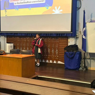 กลุ่มสาระการเรียนรู้วิชาภาษาไทยระดับมัธยมศึกษาตอนต้นจัดกิจกรรมประกวดร้องเพลงลูกทุ่งกิจกรรมเนื่องในวันภาษาไทยแห่งชาติประจำปีการศึกษา 2566 การประกวดจัดขึ้น 2 รอบรอบแรกรอบคัดเลือก วันพฤหัสบดีที่ 13 กรกฎาคม 2566 ณห้องโสตศึกษาอาคารร่มเกล้า