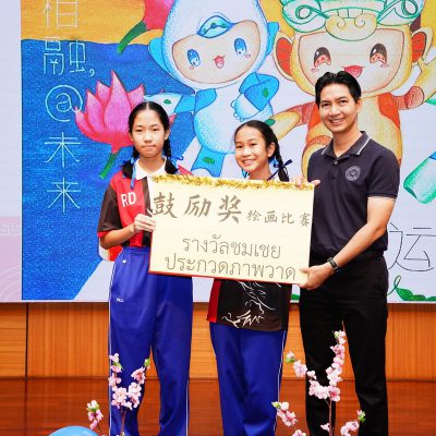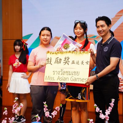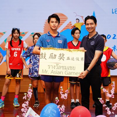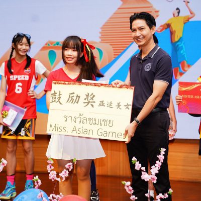ให้กับนักเรียนระดับชั้นมัธยมศึกษาปีที่ 1 โดยในงานมีการมอบรางวัล การประกวดวาดภาพเอเชี่ยนเกมส์ การตอบคำถามชิงรางวัลเกี่ยวกับเอเชี่ยนเกมส์ และการประกวด Mr.& Miss Asian Games ณ ห้องประชุม Cornelia McGilvary Harris Auditorium อาคาร 100 ปี สถาบันแฮรีส