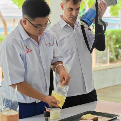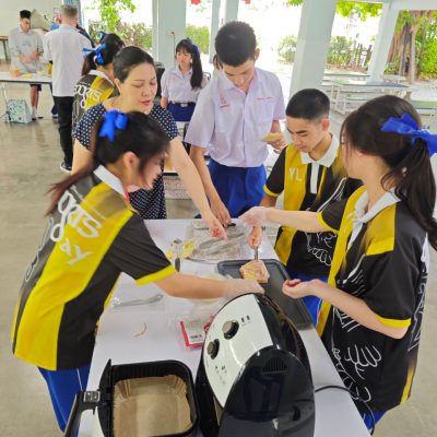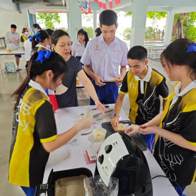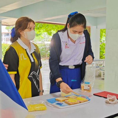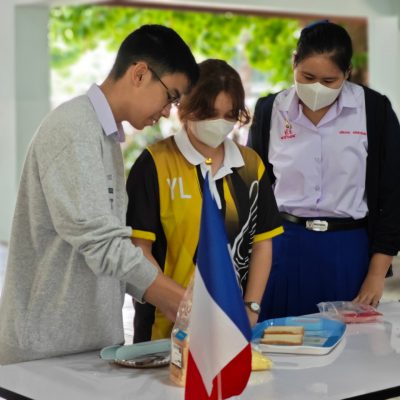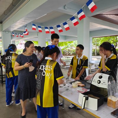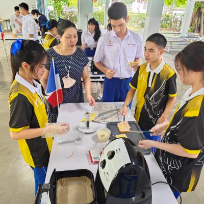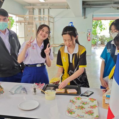 นักเรียนชั้นมัธยมศึกษาปีที่ 6 แผนการเรียนศิลป์-ภาษาฝรั่งเศส ร่วม กิจกรรมการเรียนรู้ด้านภาษาและวัฒนธรรมฝรั่งเศส ผ่าน กิจกรรมทำ Croque Monsieur (คร็อก เมอซิเออ) สอนโดยอาจารย์สุทธินี เดชารัตน์ อาจารย์พิเศษจากสาขาวิชาภาษาฝรั่งเศสเพื่ออุตสาหกรรมการบริการ มหาวิทยาลัยราชภัฏเชียงใหม่ และ Mr. Guillaume Leroux เมื่อวันที่ 21 สิงหาคม 2566