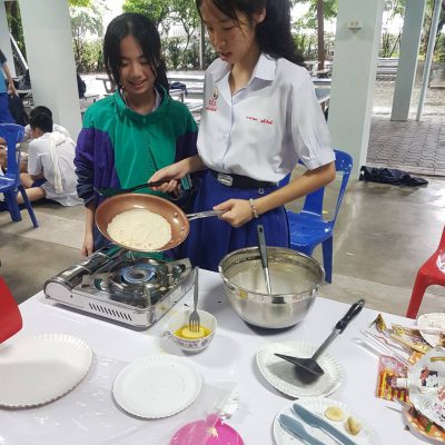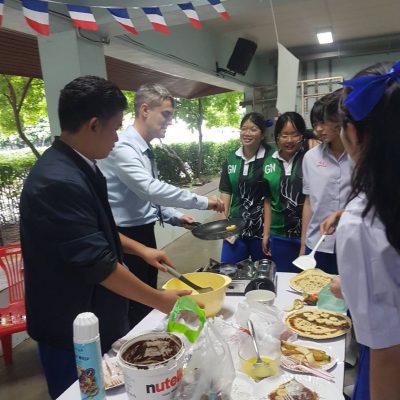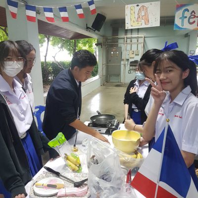นักเรียนชั้นมัธยมศึกษาปีที่ 4-5 แผนการเรียนศิลป์-ภาษาฝรั่งเศส ร่วมกิจกรรมการเรียนรู้ด้านภาษาและวัฒนธรรมฝรั่งเศส ผ่านกิจกรรมทำ Crepes (เครปฝรั่งเศส) สอนโดยอาจารย์สุทธินี เดชารัตน์ อาจารย์พิเศษจากสาขาวิชาภาษาฝรั่งเศสเพื่ออุตสาหกรรมการบริการ มหาวิทยาลัยราชภัฏเชียงใหม่ และ Mr. Guillaume Leroux เมื่อวันที่ 15 สิงหาคม 2566