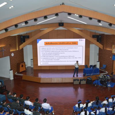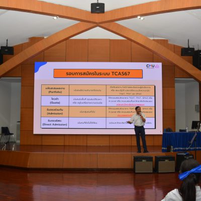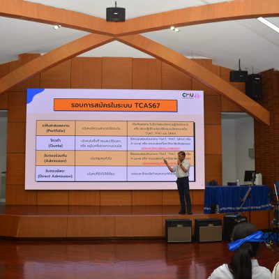 ระดับมัธยมศึกษาตอนปลาย จัดให้มี “การบรรยายให้ความรู้เรื่องการรับสมัครคัดเลือกบุคคลเข้าศึกษาในมหาวิทยาลัยเชียงใหม่ TCAS ปีการศึกษา 2567 (โดยเฉพาะในส่วนการรับนักศึกษาใน TCAS 1 – TCAS 4 ของมหาวิทยาลัยเชียงใหม่)” ให้กับนักเรียนชั้นมัธยมศึกษาปีที่ 6 โดย ดร.รณชัย ปรารถนาผล รองผู้อำนวยการสำนักทะเบียนและประมวลผล มหาวิทยาลัยเชียงใหม่ เมื่อวันพฤหัสบดีที่ 19 ตุลาคม 2566 ระหว่างเวลา 09.00 – 11.30 น. ณ ห้องประชุมใหญ่ อาคารสถาบันแฮรีส