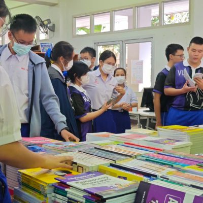 ห้องสมุดระดับมัธยมศึกษาตอนปลาย ร่วมกับ ร้านศูนย์หนังสือจุฬาฯ สาขามหาวิทยาลัยพะเยา จัดกิจกรรมออกบูทหนังสือลดราคา 10 -15 % ในวันที่ 14 – 15 พฤศจิกายน 2566 ระหว่างเวลา 10.00 – 17.30 น. ณ ห้องสมุดระดับมัธยมศึกษาตอนปลาย อาคาร D.G. Collins หนังสือที่นำมาจำหนายอาทิ หนังสือคู่มือเตรียมสอบระดับมัธยมศึกษาตอนปลาย, คู่มือเตรียมสอบเข้ามหาวิทยาลัย , หนังสืออ่านเล่นทั่วไป , นิยายทั้งไทย และนิยายแปล ซึ่งได้รับความสนใจจากคณะครู และนักเรียน ม.ปลาย เป็นอย่างมาก