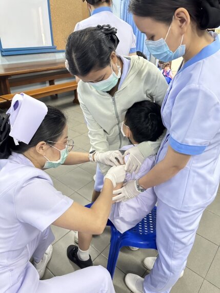 1.ชั้นประถมศึกษาปีที่ 1 ฉีดวัคซีนป้องกันโรคคอตีบ บาดทะยัก ,โรคหัด หัดเยอรมัน คางทูม , หยอดวัคซีนป้องกันโปลิโอ