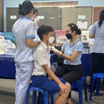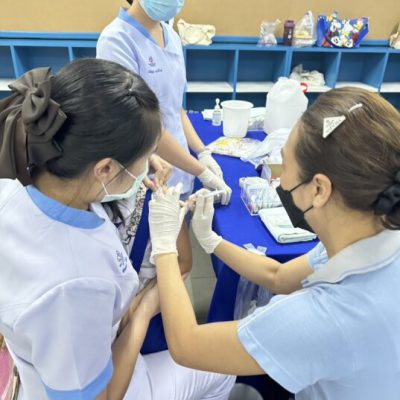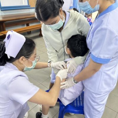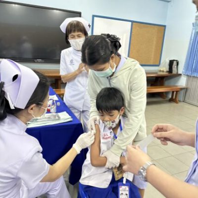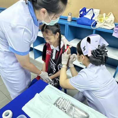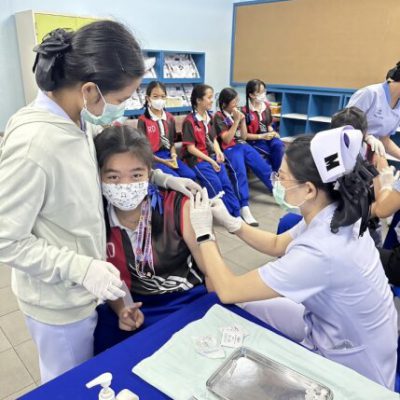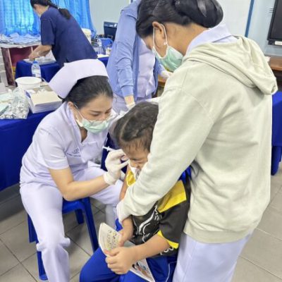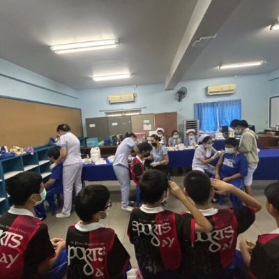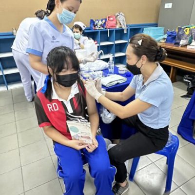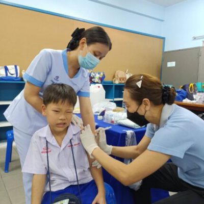 2. ชั้นประถมศึกษาปีที่ 6 ฉีดวัคซีนป้องกันโรคคอตีบ บาดทะยัก ตามนโยบายโครงการหลักประกันสุขภาพแห่งชาติ ในวันศุกร์ ที่ 20 ตุลาคม 2566 ณ ห้องเรียนเลโก้ อาคาร 90 ปี