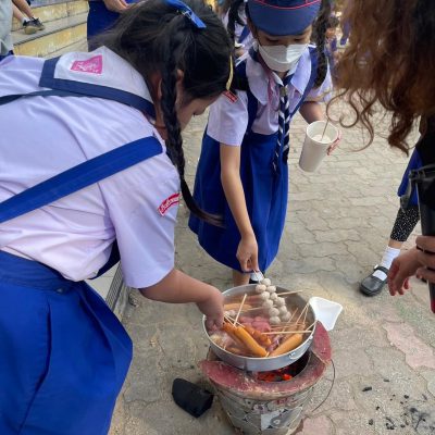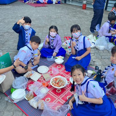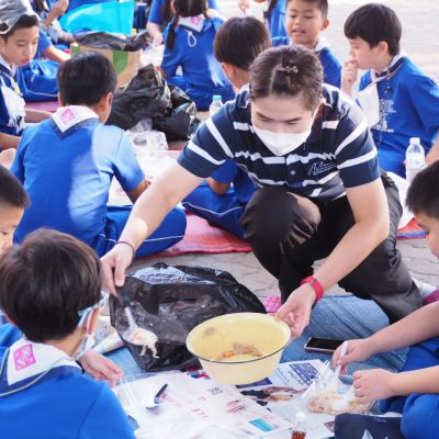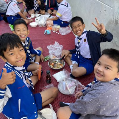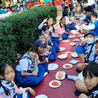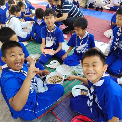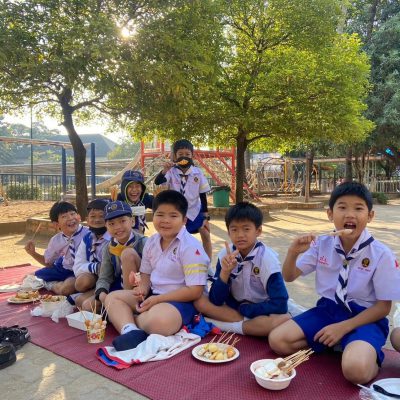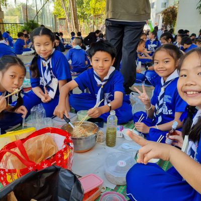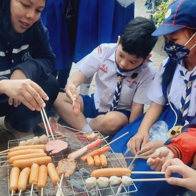 นักเรียนระดับชั้นปีที่ 2 ประกอบอาหารด้วยการก่อไฟ ด้วยการ ปิ้ง ลวก นึ่ง ต้ม