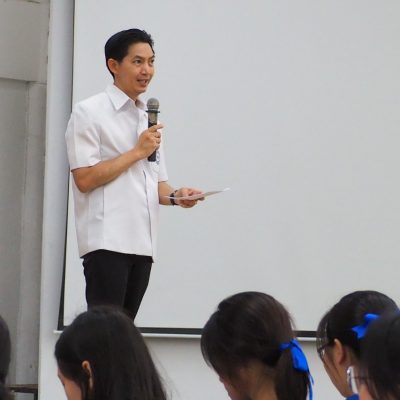 กล่าวให้กำลังใจ โดย นายแพทย์พันธพงศ์ ตาเรืองศรี นายกสมาคมผู้ปกครองและครูโรงเรียนปรินส์รอยแยลส์วิทยาลัย