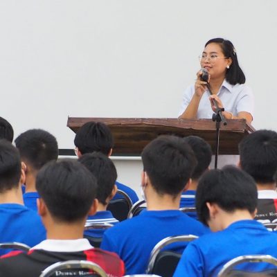 กล่าวหนุนนำใจ โดย อาจารย์อภิชา อินสุวรรณ อธิการบดีมหาวิทยาลัยพายัพ อุปนายกด้านวิชาการและกิจกรรมโรงเรียน สมาคมนักเรียนเก่าปรินส์รอยแยลส์วิทยาลัย