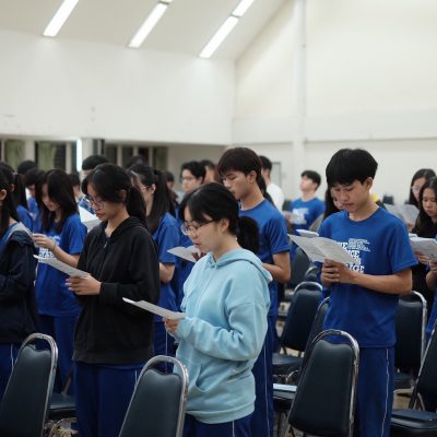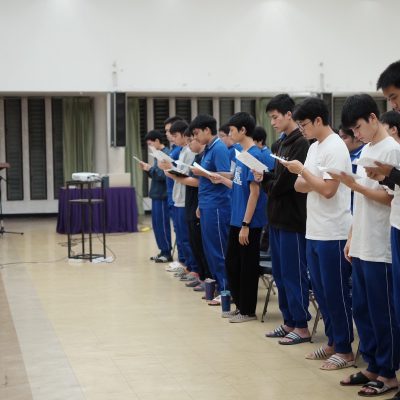 วันศุกร์ที 26 มกราคม 2567 เวลา 19.00 น. ระดับมัธยมศึกษาตอนปลาย จัดให้มีพิธีนมัสการปิดค่ายวิชาการนักเรียนชั้น ม.6 รุ่น “Fleur” ณ ศูนย์วิจัย บูรณาการ สาธิต และฝึกอบรมนวัตกรรมการเกษตร มหาวิทยาลัยเชียงใหม่ โดย ดร.เกรียง ฐิติจำเริญพร ผู้จัดการ-ผู้อำนวยการ กล่าวปิดค่ายวิชาการฯ และ อาจารย์ปัญญา สกุลปั้นทรัพย์ รองผู้อำนวยการฝ่ายการจัดการและเทคโนโลยีสารสนเทศ กล่าวให้ข้อคิดกับนักเรียนในค่ายวิชาการ ระหว่างการอยู่ในค่ายวิชาการฯ มีผู้ใหญ่ใจดี และรุ่นพี่รุ่นต่าง ๆ มาเลี้ยงของว่างมื้อดึกให้นักเรียนในค่ายวิชาการ