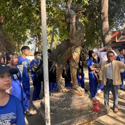 วิชาเลือกเสรีการพูด : การเปิดโอกาสให้นักเรียนได้แสดงออกในความสามารถที่มีอยู่ กล้าที่จะพูดต่อหน้าชุมชน ฝึกทักษะการใช้ภาษา สำหรับนักเรียนกลุ่มหนึ่งที่ให้ความสนใจในการใช้ทักษะการพูด การเรียนและฝึกปฏิบัติในห้องเรียนตลอดภาคเรียนทำให้นักเรียนมีความพร้อมและกล้าที่จะใช้ความรู้ที่มีอยู่ไปฝึกปฏิบัติกับสถานที่จริง ดังนั้นเมื่อวันที่ 7 กุมภาพันธ์ 2567 ระดับมัธยมศึกษาตอนปลายได้นำนักเรียนชั้นมัธยมศึกษาปีที่ 5 ห้องเรียนปกติ ที่เลือกเรียนวิชาการพูด จำนวน 20 คน ไปศึกษาดูงานที่เมืองโบราณเวียงกุมกาม